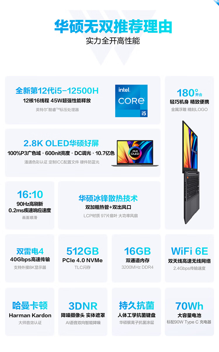 配置:intel i5-12500H 16GDDR5 512G固态硬盘 2880x1800dpi高亮屏
