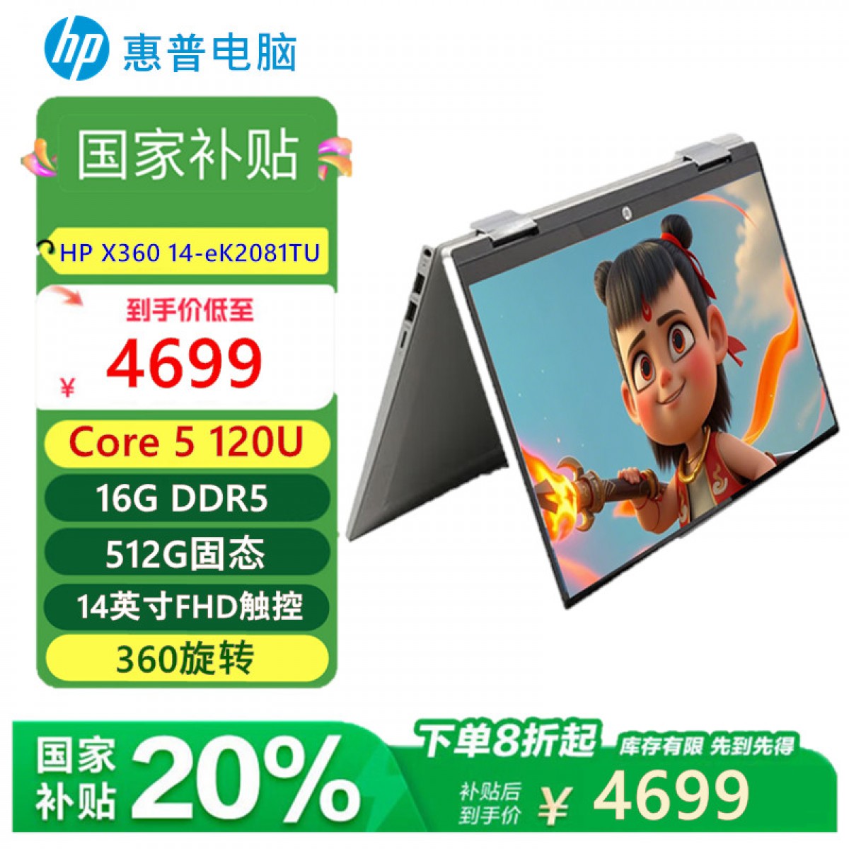 惠普(HP) 星14 X360°变形本 24新款 14英寸轻薄便携翻转触摸平板二合一笔记本电脑学生学习办公 国补:Core 5-120U 16G内存 512G PCIE固态 标配版