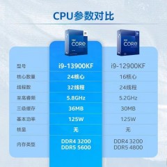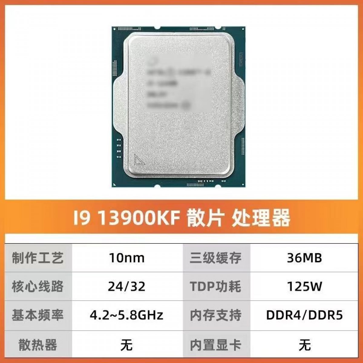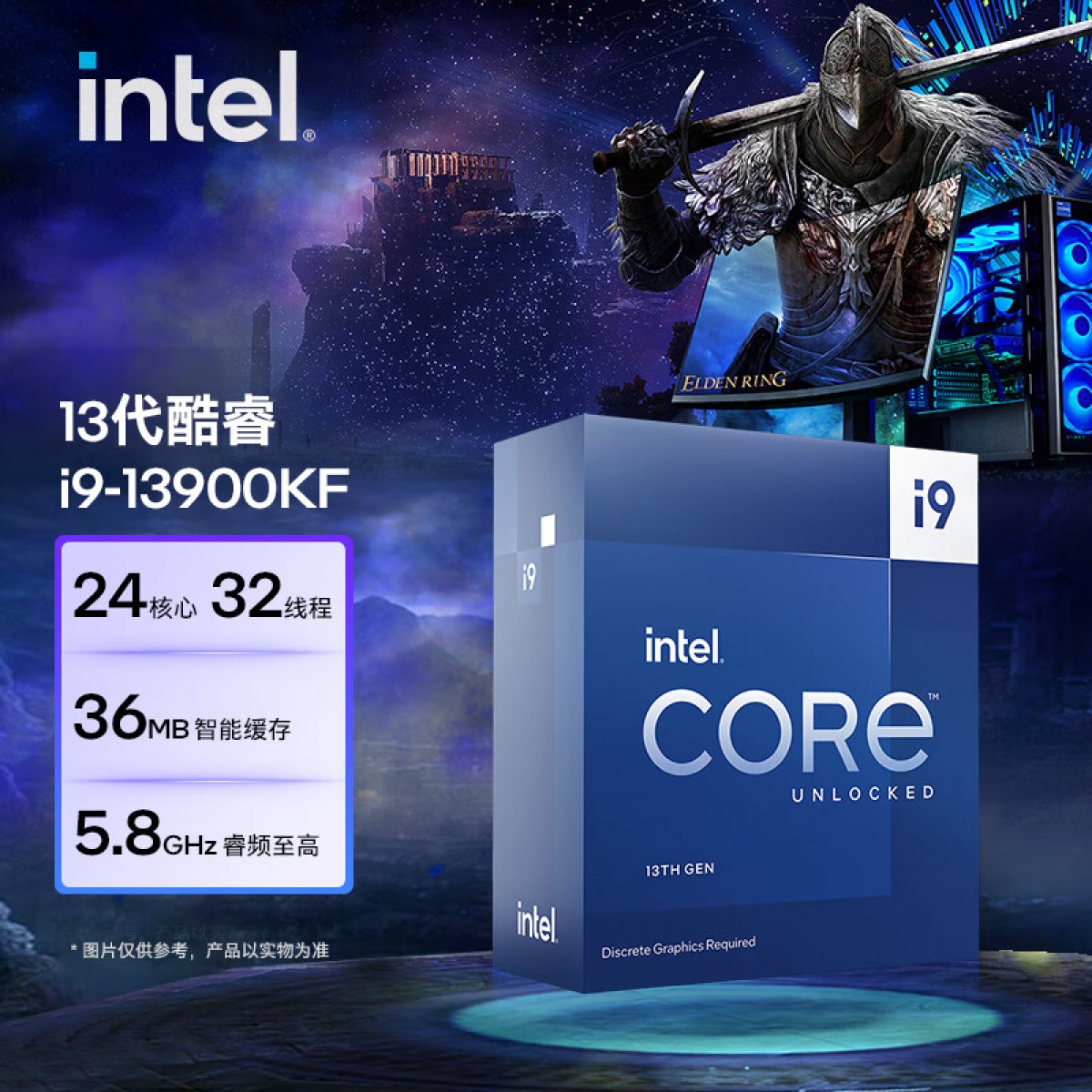 英特尔(Intel) i9-13900KF 13代 酷睿 处理器24核32线程 睿频至高可达5.8Ghz 36M三级缓存 台式机CPU