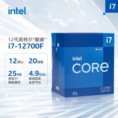 英特尔(Intel)酷睿 奔腾 CPU处理器 台式机 原盒 12代 i7-12700F【12核20线程】