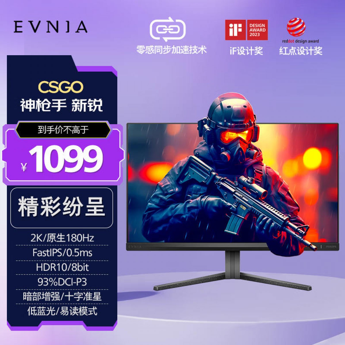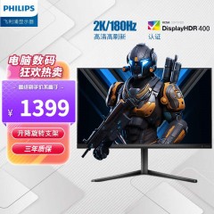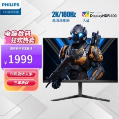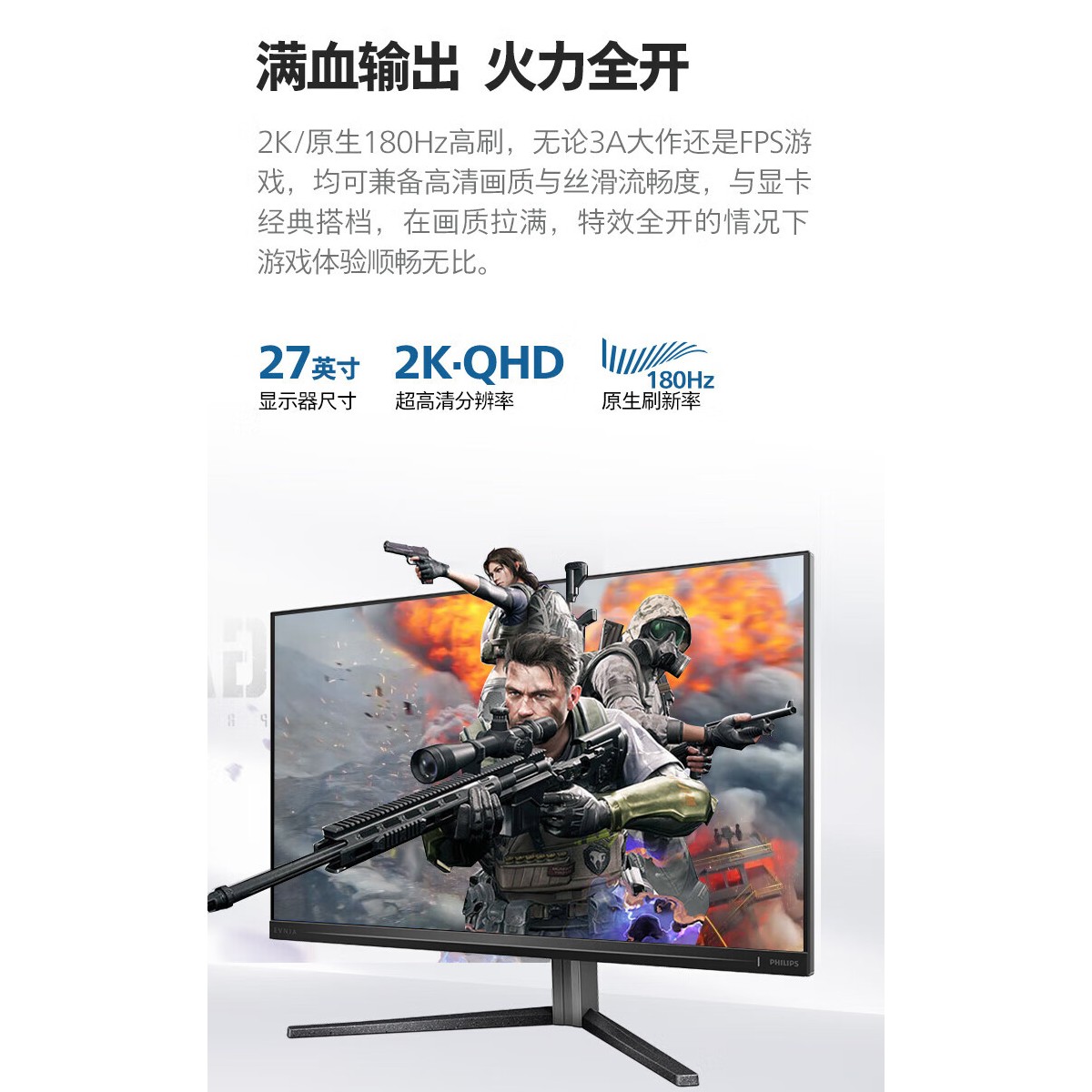 飞利浦 27英寸电竞显示器 2K 原生180Hz Fast-IPS屏 HDR400 1ms 满血10bit 升降旋转 游戏电脑显示屏幕 27M2N5510J