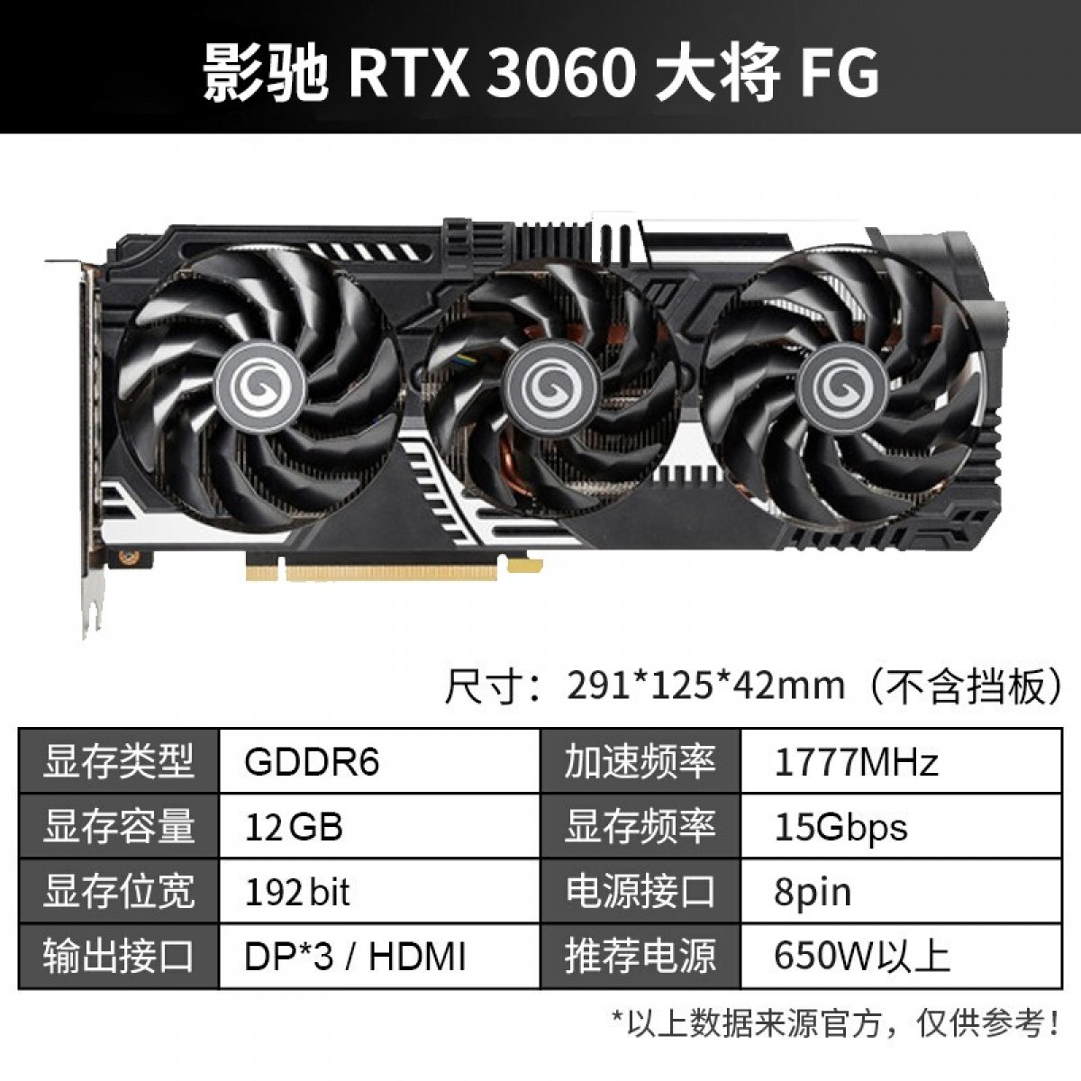 影驰 RTX3060系列 N卡nvidia芯片电竞台式机吃鸡游戏显卡 3060大将OC 12G