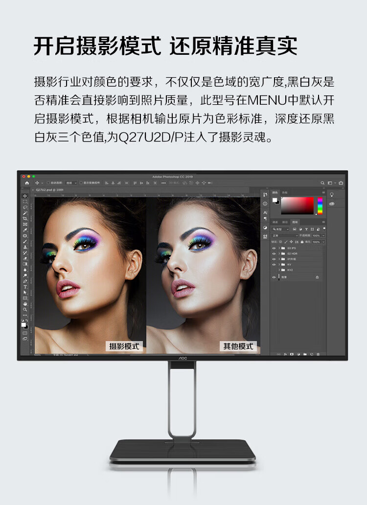 AOC 27英寸 2K高清 180Hz HDR10 快速液晶1ms 广色域 旋转升降 曲面电竞电脑显示器