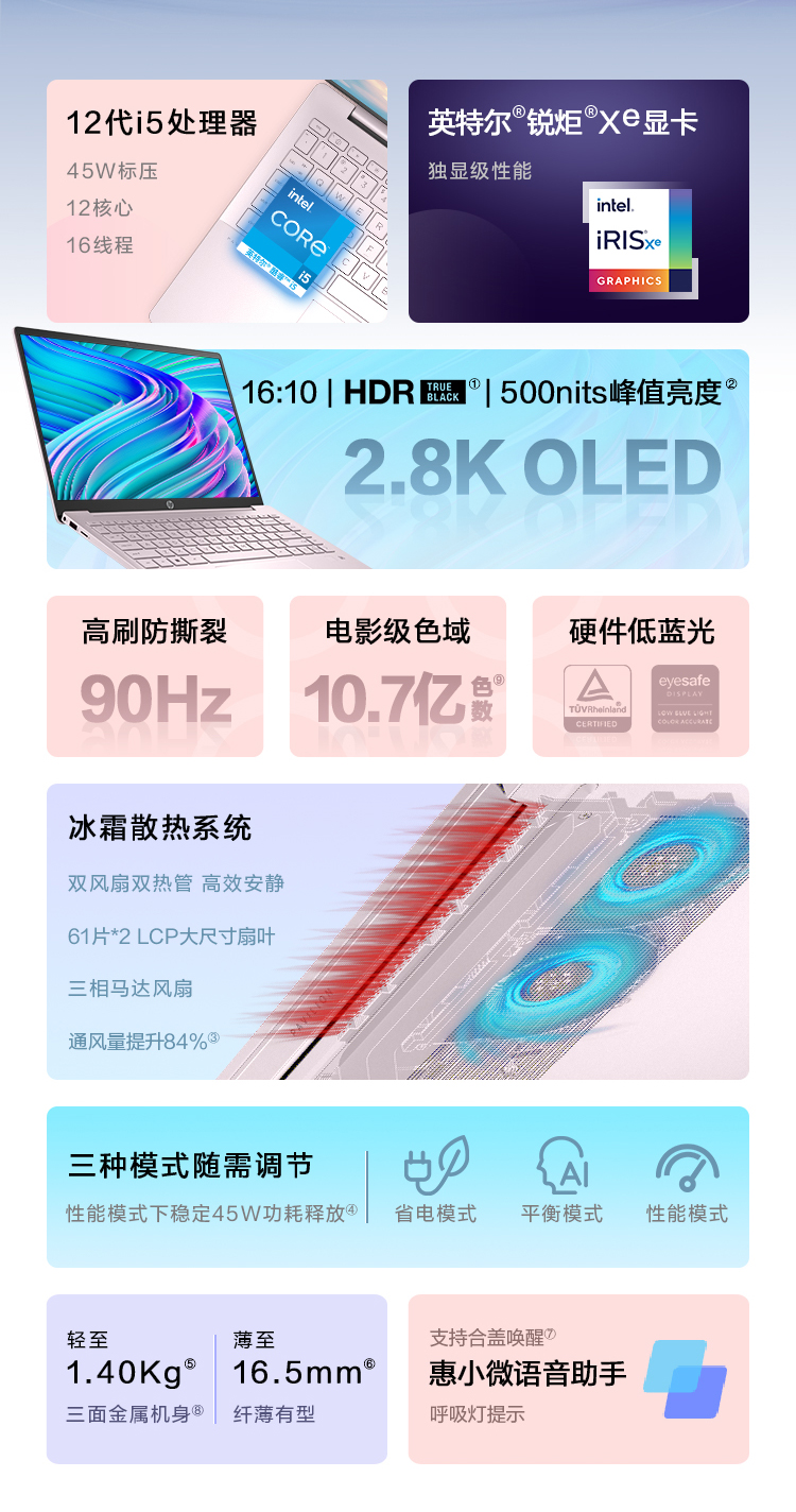 12代英特尔酷睿i5-12500H 16G 512G 高色域 2.8K低蓝光 智能语音