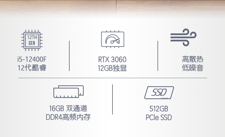 i5-12400F 16GB RTX3060Ti 8G独显 升级3年保修 黑