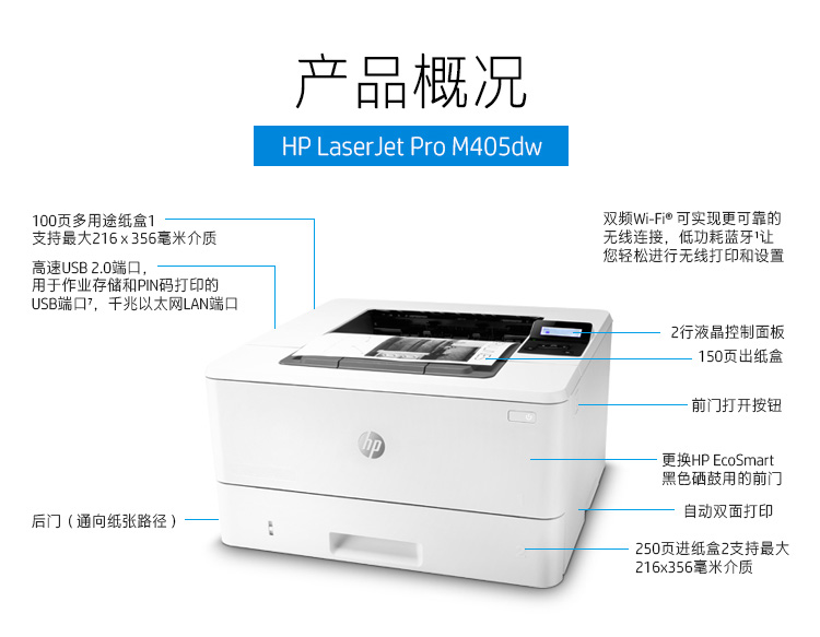 商品名称:惠普(HP) M405d系列专业级激光打印机 液晶显示屏 自动双面打印 无线连接M403dw升级系列