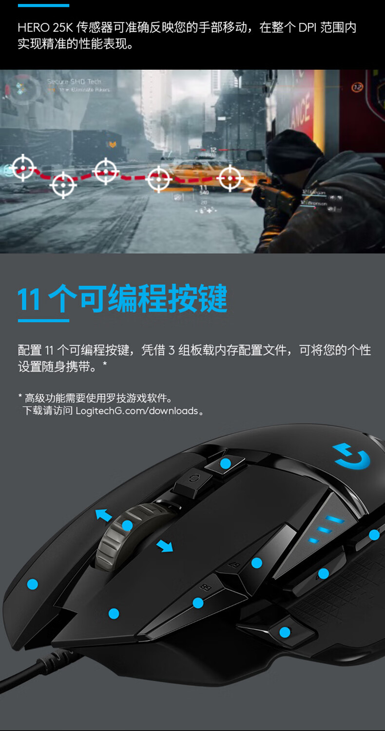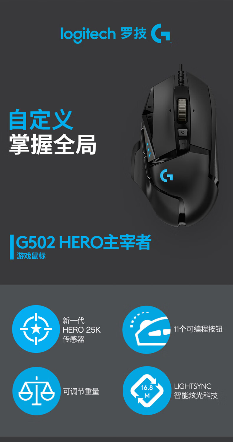 罗技(G) G502 HERO主宰者游戏鼠标电竞鼠标