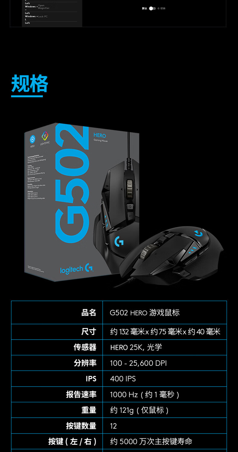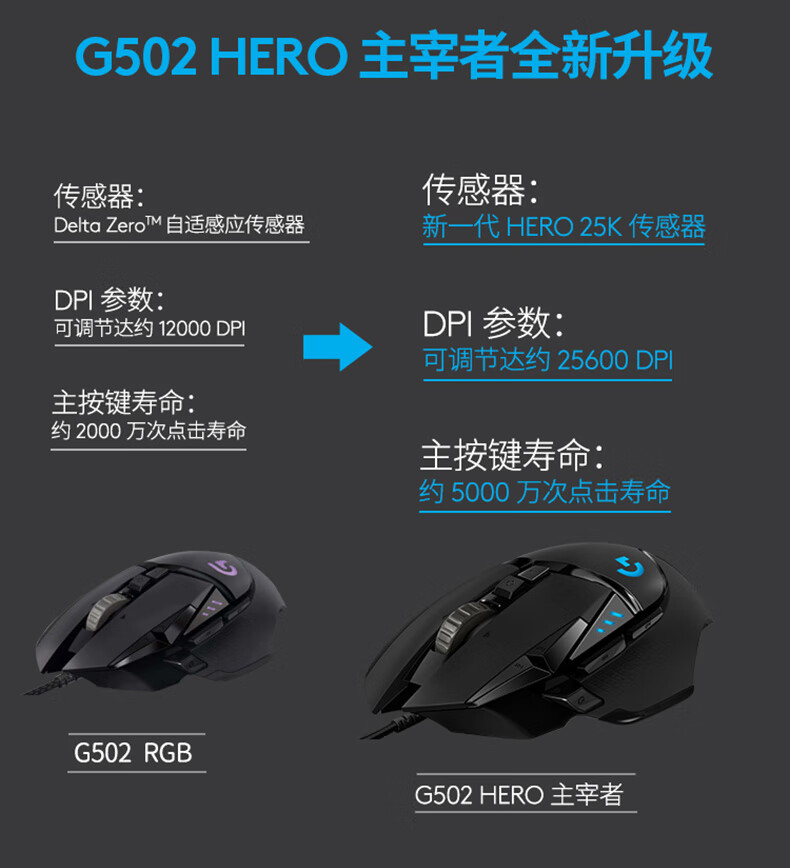 商品名称:罗技(G) G502 HERO主宰者游戏鼠标电竞鼠标