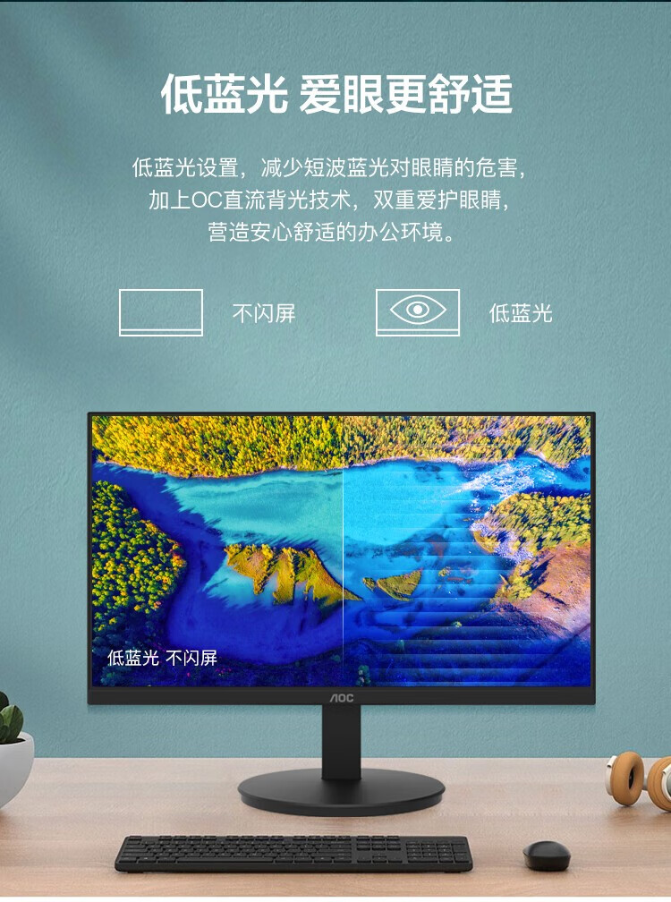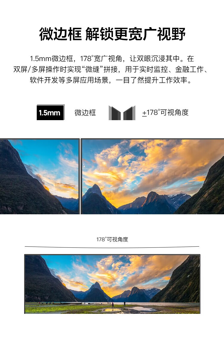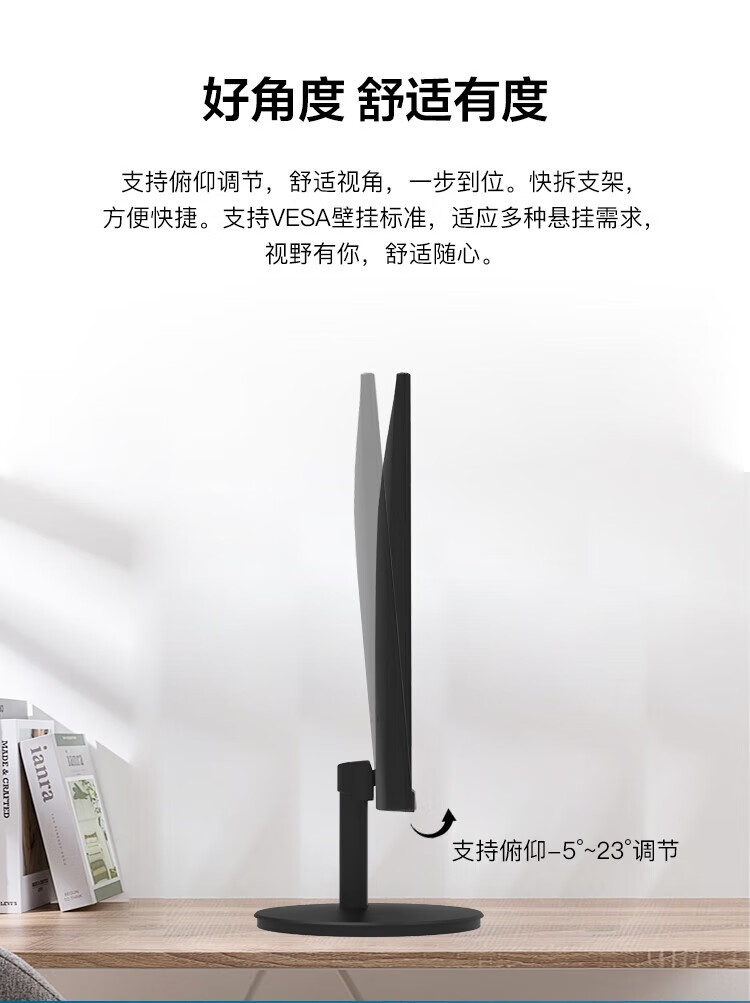 HDMI接口1080P全高清 支持壁挂 窄边框 低蓝光爱眼不闪屏电脑显示器