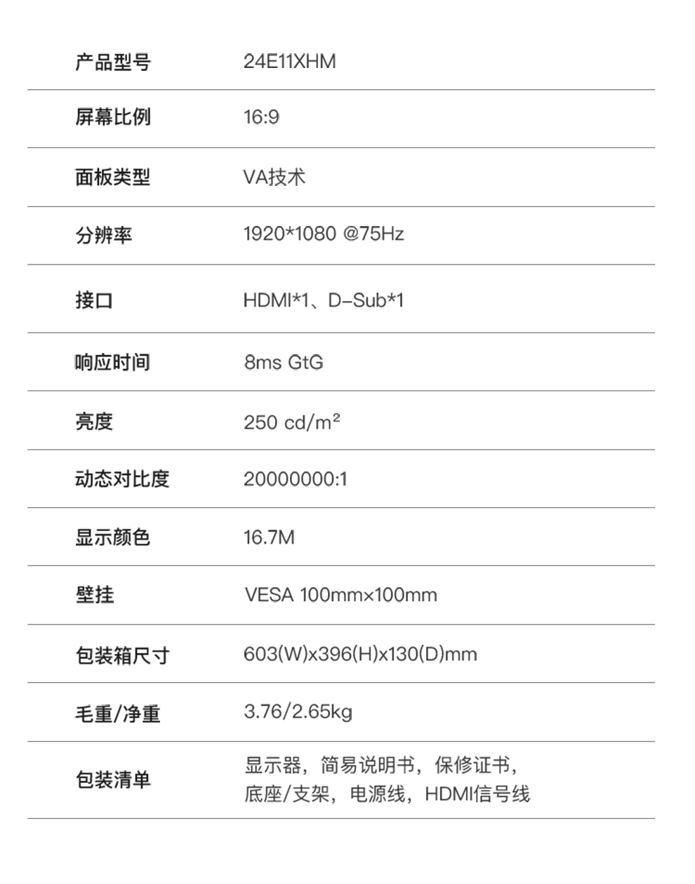 商品名称:AOC显示器 24E11HM 23.8英寸