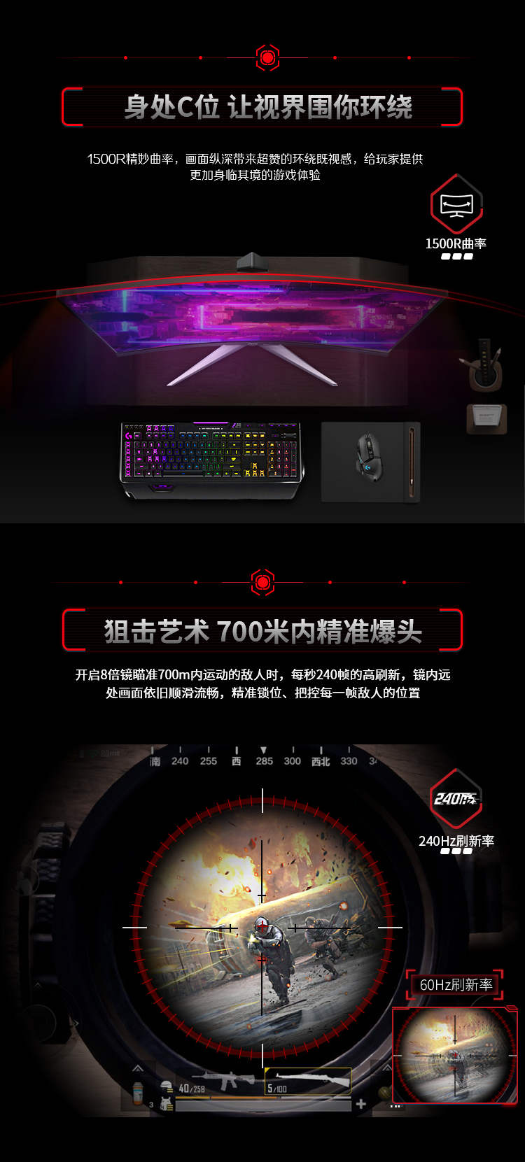创新曲率1500R旋转升降0.5MS响应曲面显示屏 C27G2Z 经典款 曲面屏240HZ 曲面