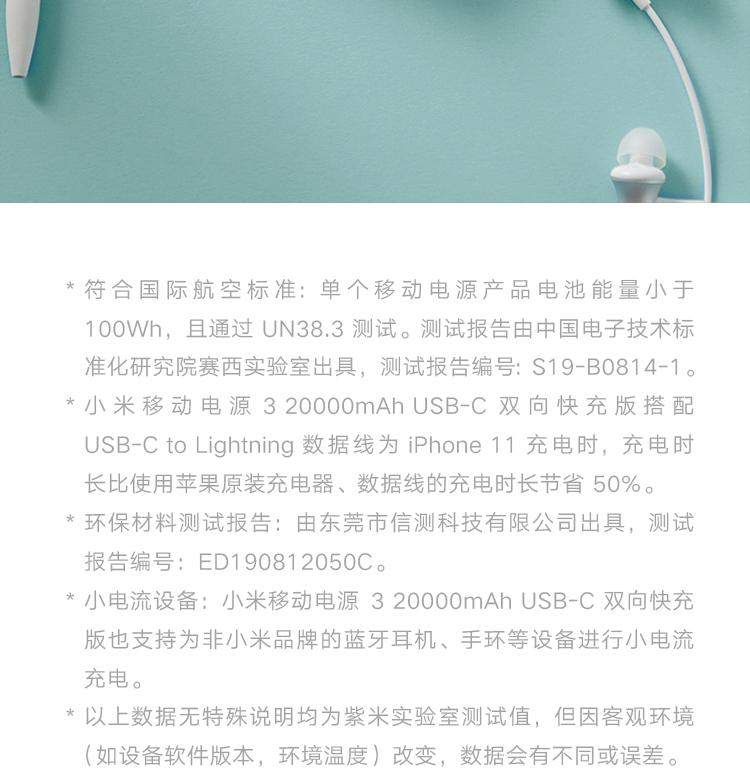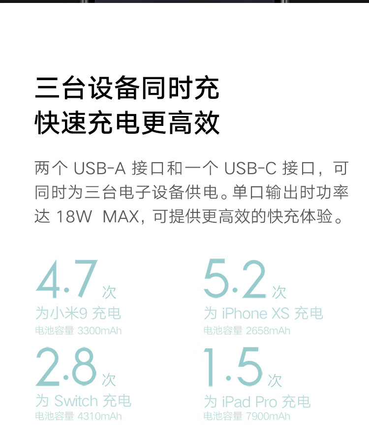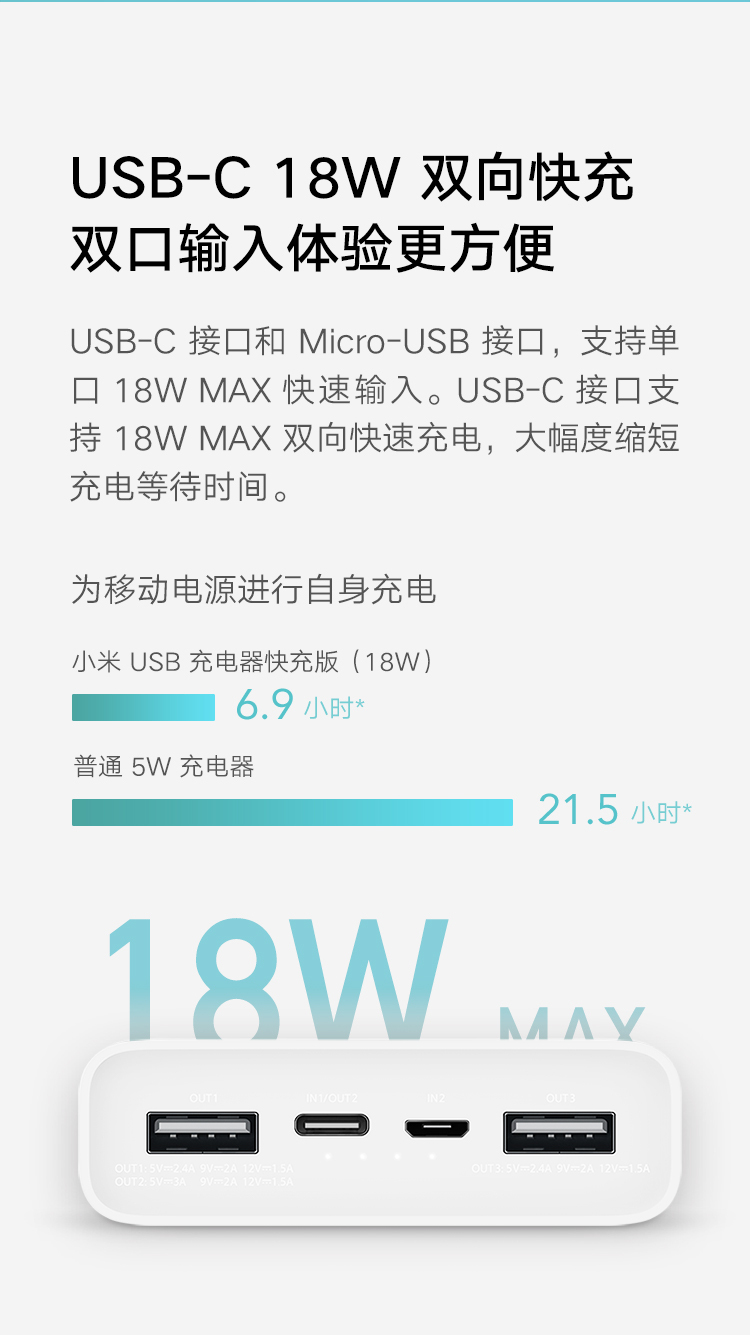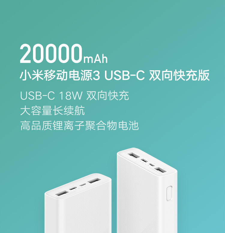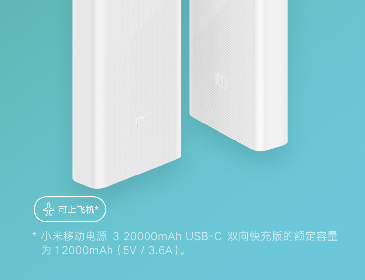 商品名称:小米移动电源3 原装20000毫安时