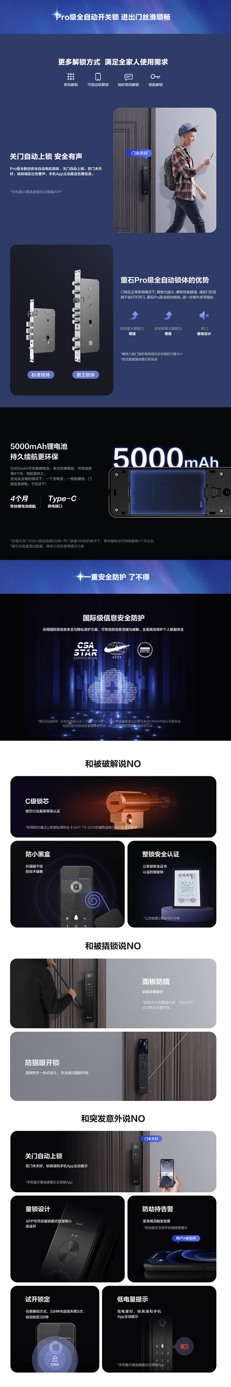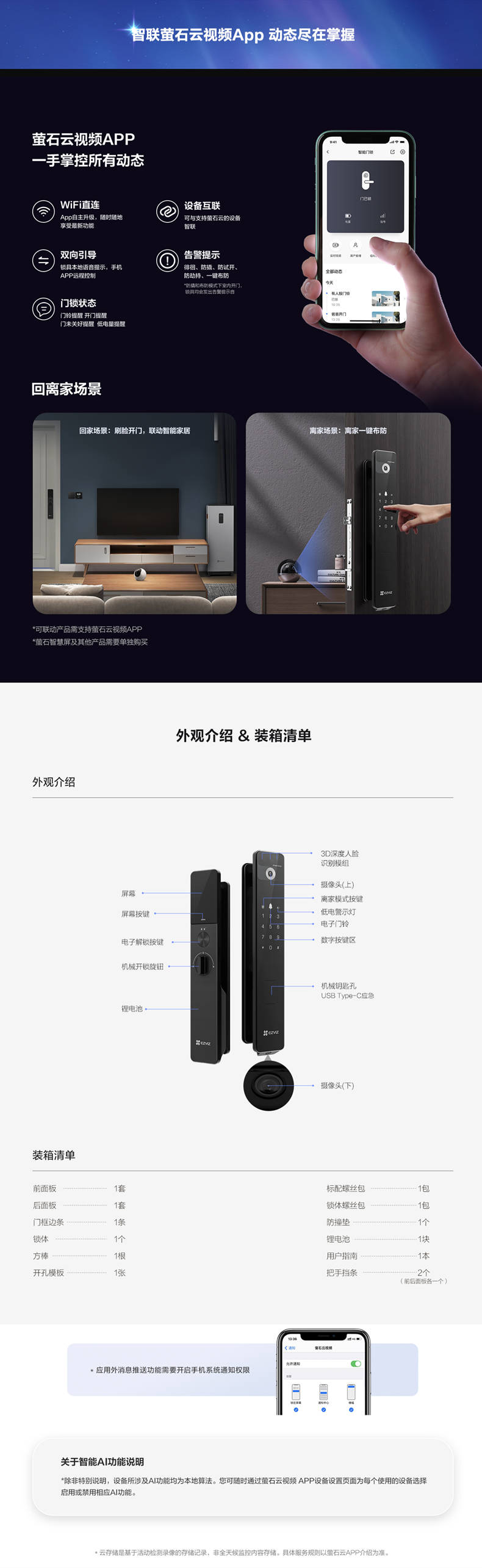 萤石 Y1000 握开指纹锁电子门锁家用防盗门智能锁