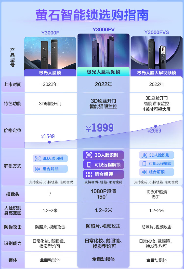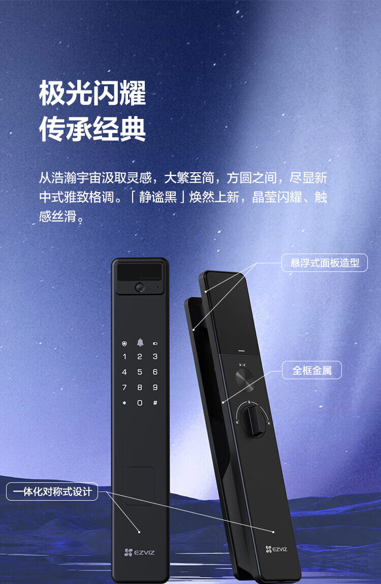 萤石 Y1000 握开指纹锁电子门锁家用防盗门智能锁
