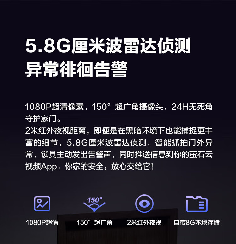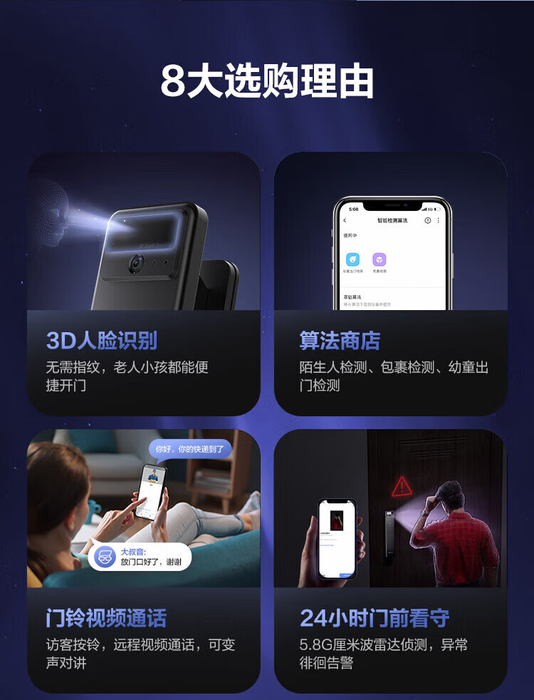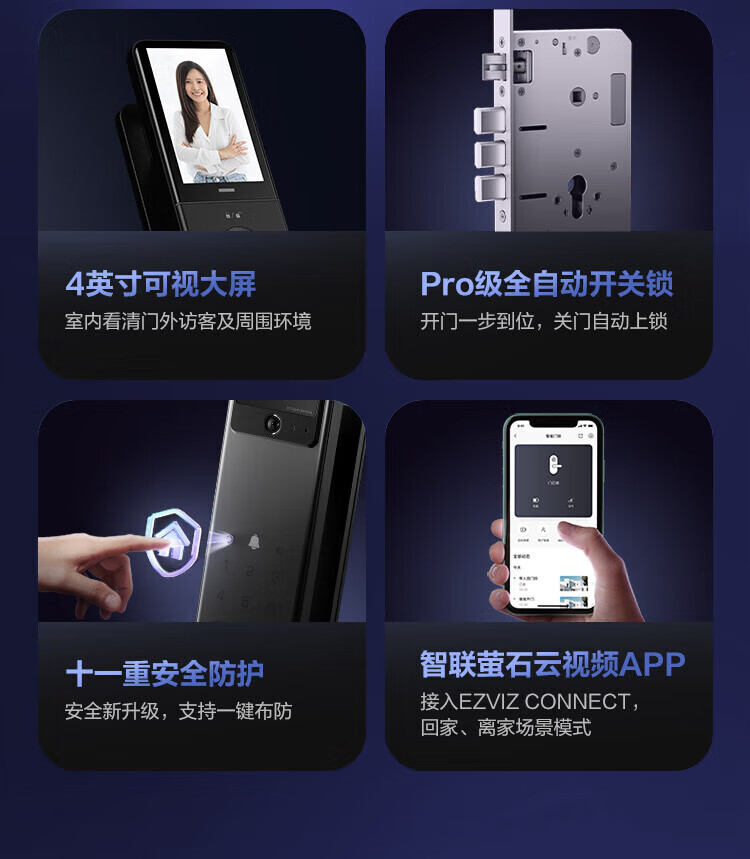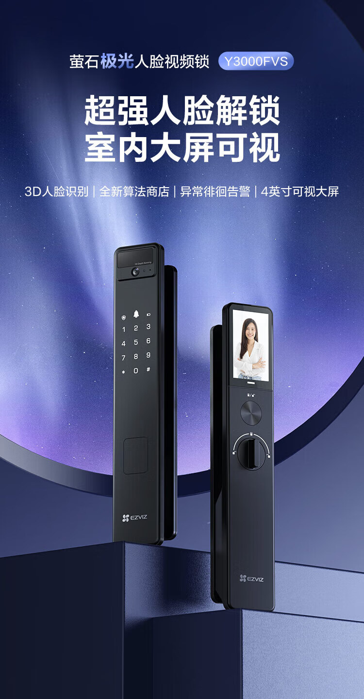 海康威视旗下 | 全自动智能门锁 |3D人脸识别 | 无需指纹 | 室内4英寸大屏 | 免费安装