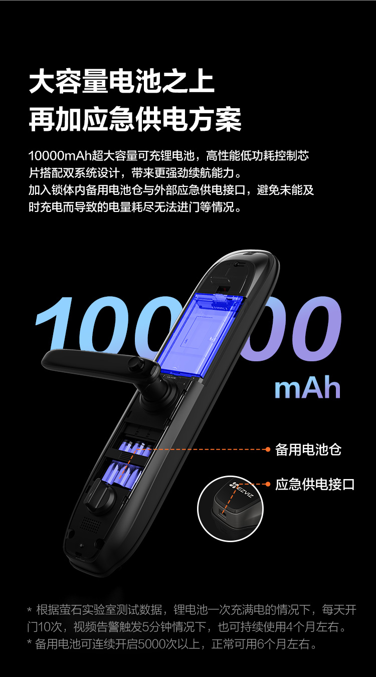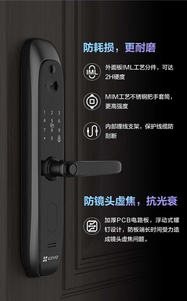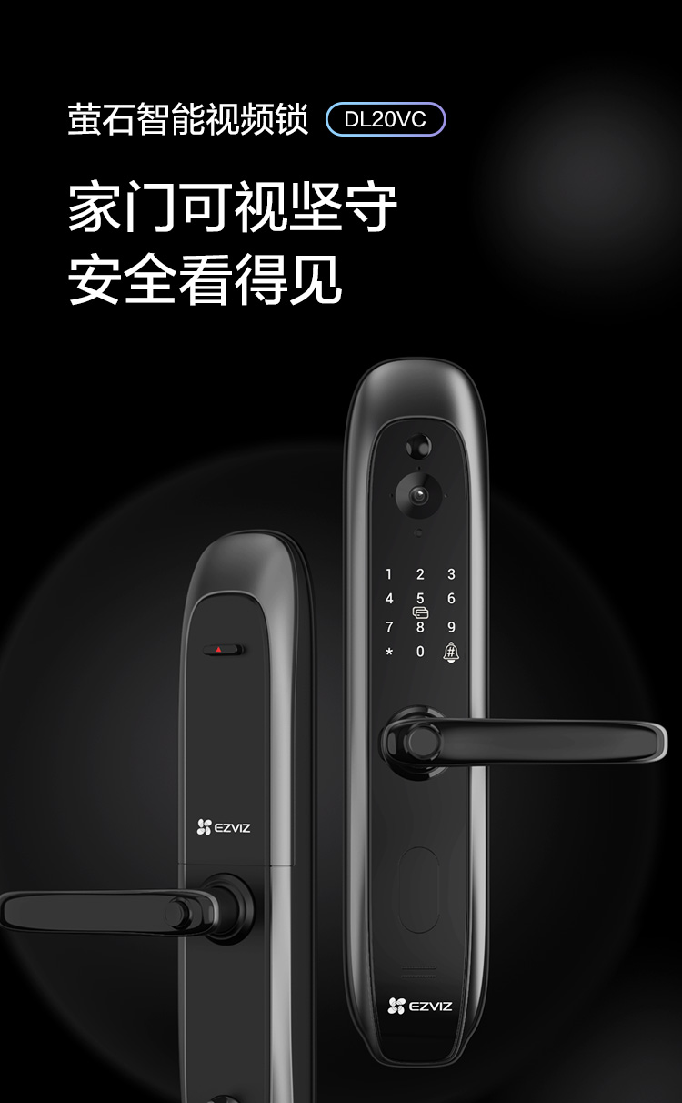 萤石DL20VC握开式指纹视频锁 | 霸王锁体 | 标准锁体