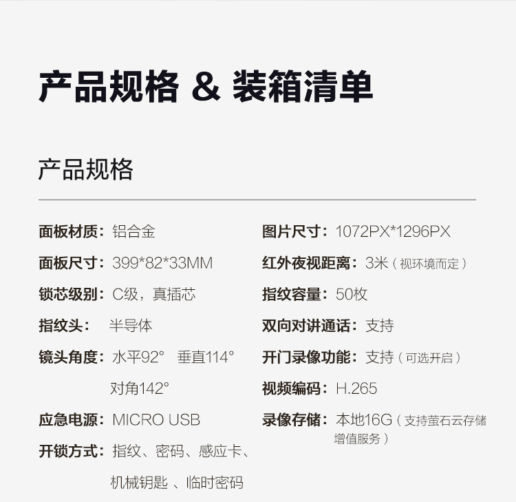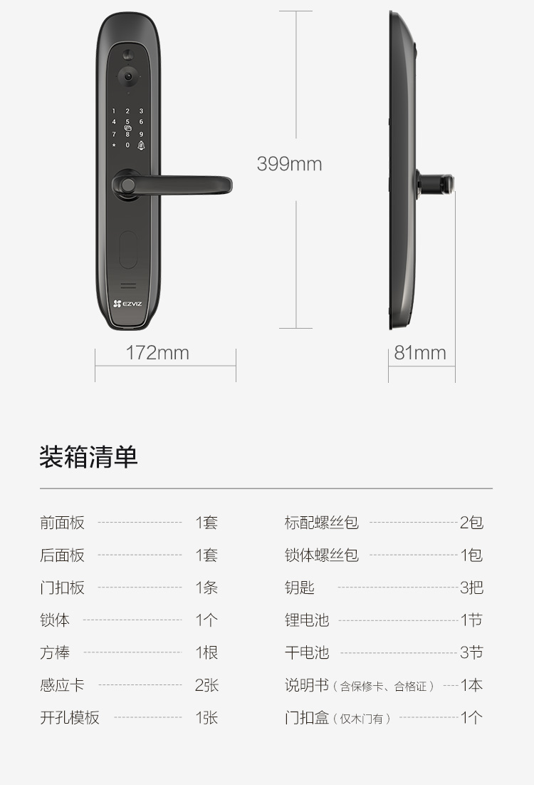 商品名称:萤石DL20VC握开式指纹视频锁 | 霸王锁体 | 标准锁体