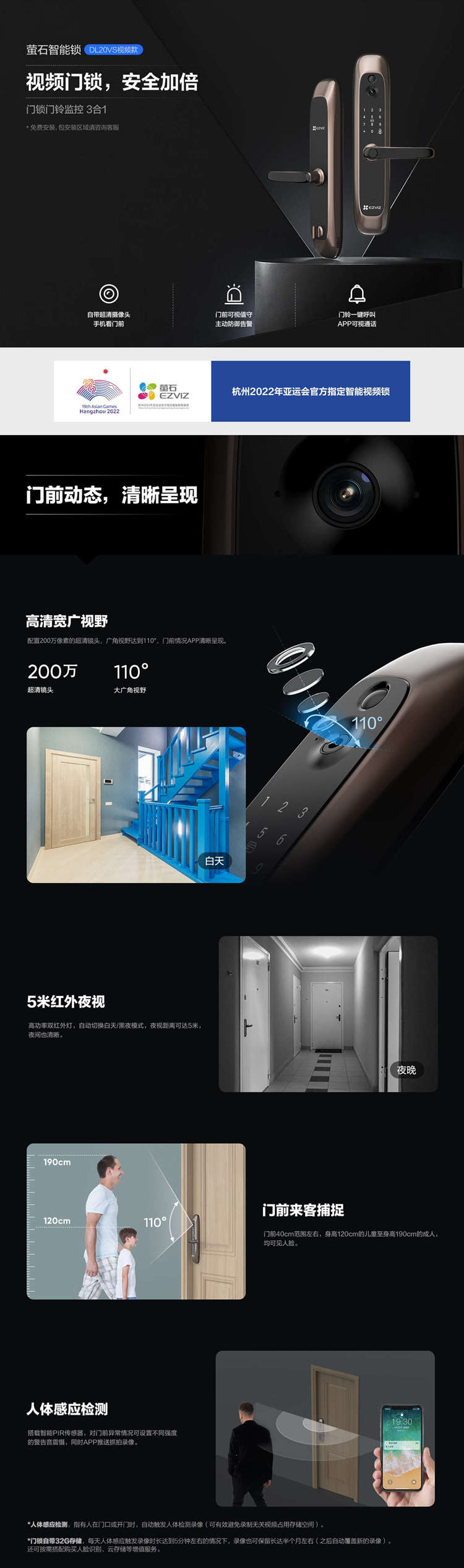 商品名称:萤石智能可视门锁 DL20VS | 霸王机械锁体
