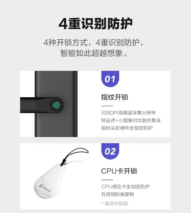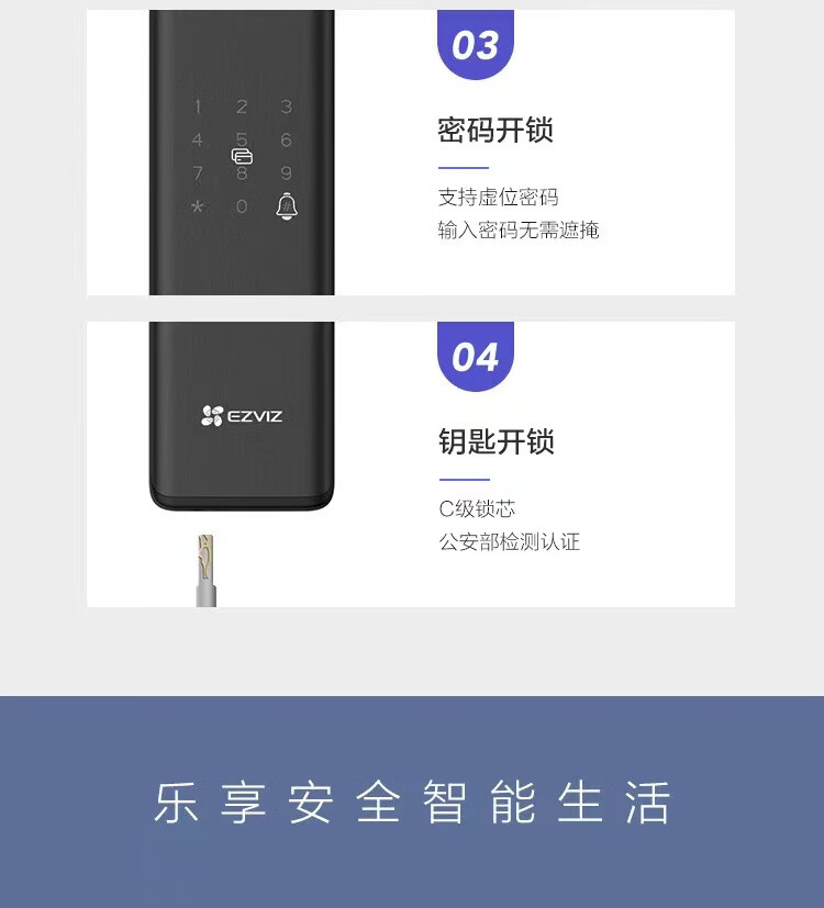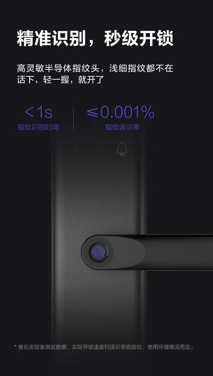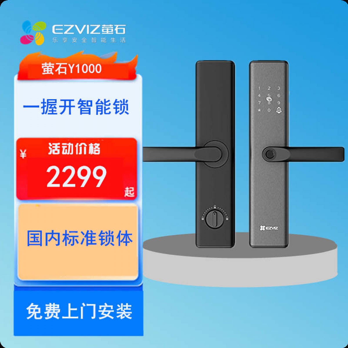 萤石 Y1000 握开指纹锁电子门锁家用防盗门智能锁