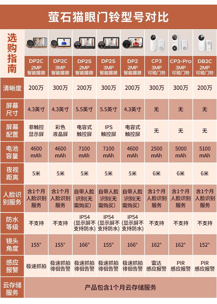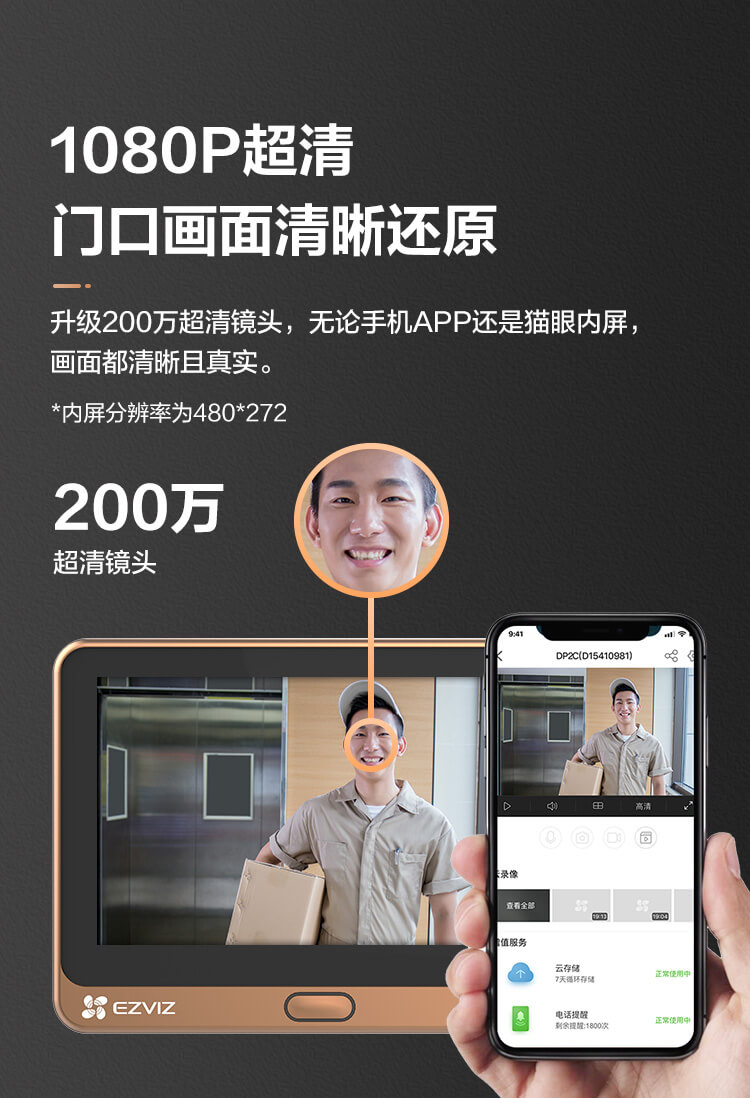 商品名称:萤石DP2C智能猫眼200万高清摄像头