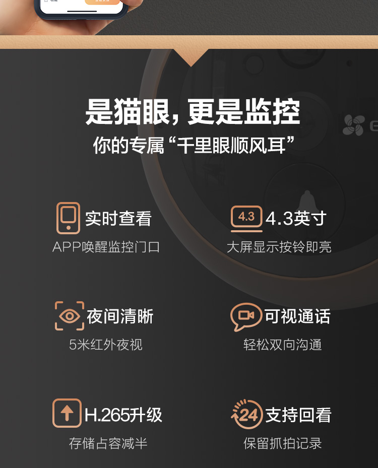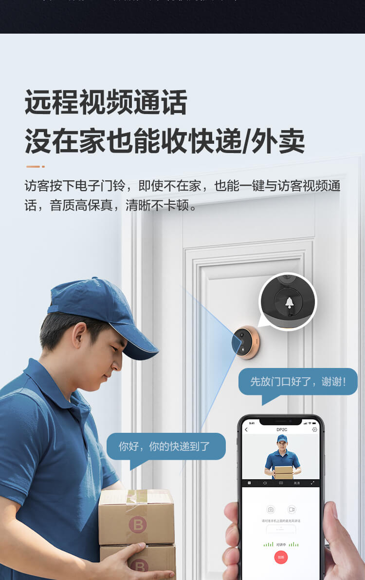 语音对讲 | 200万高清摄像头 |电子猫眼可视门铃 | 防盗门 | 手机远程可视通话