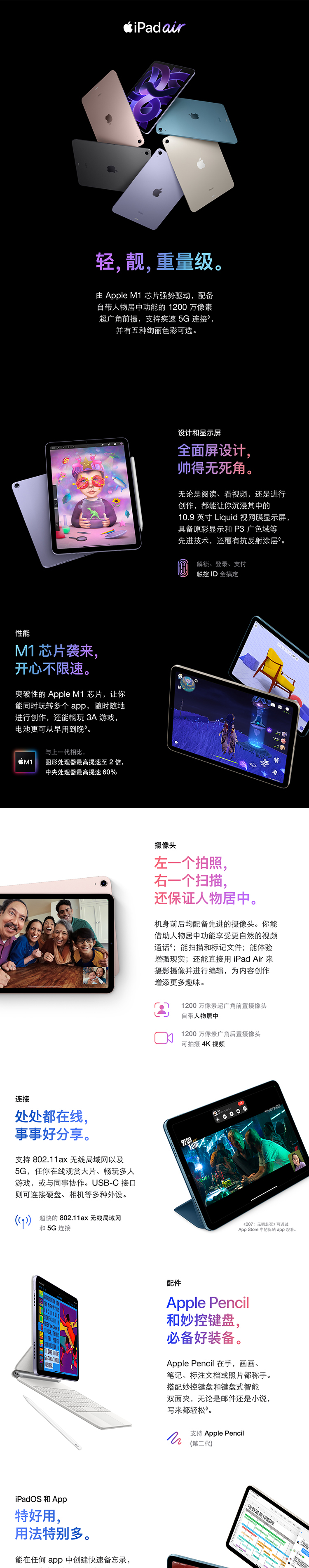 商品名称:Apple iPad Air(第 5 代)10.9英寸平板电脑 | 深空灰色 | 星光色 | 粉色