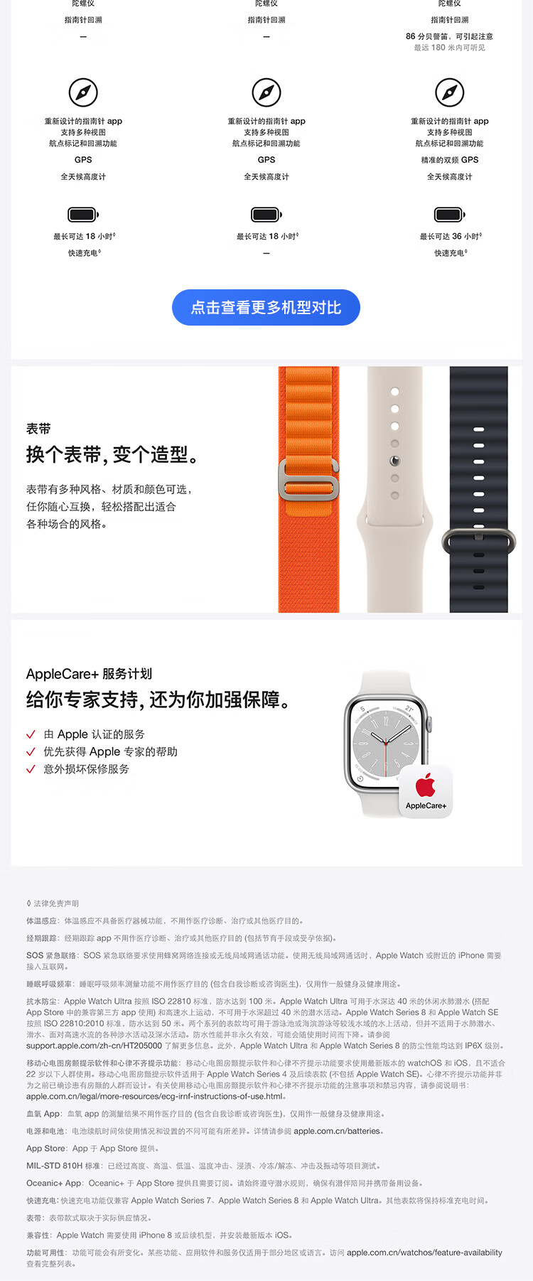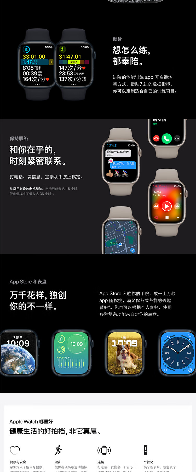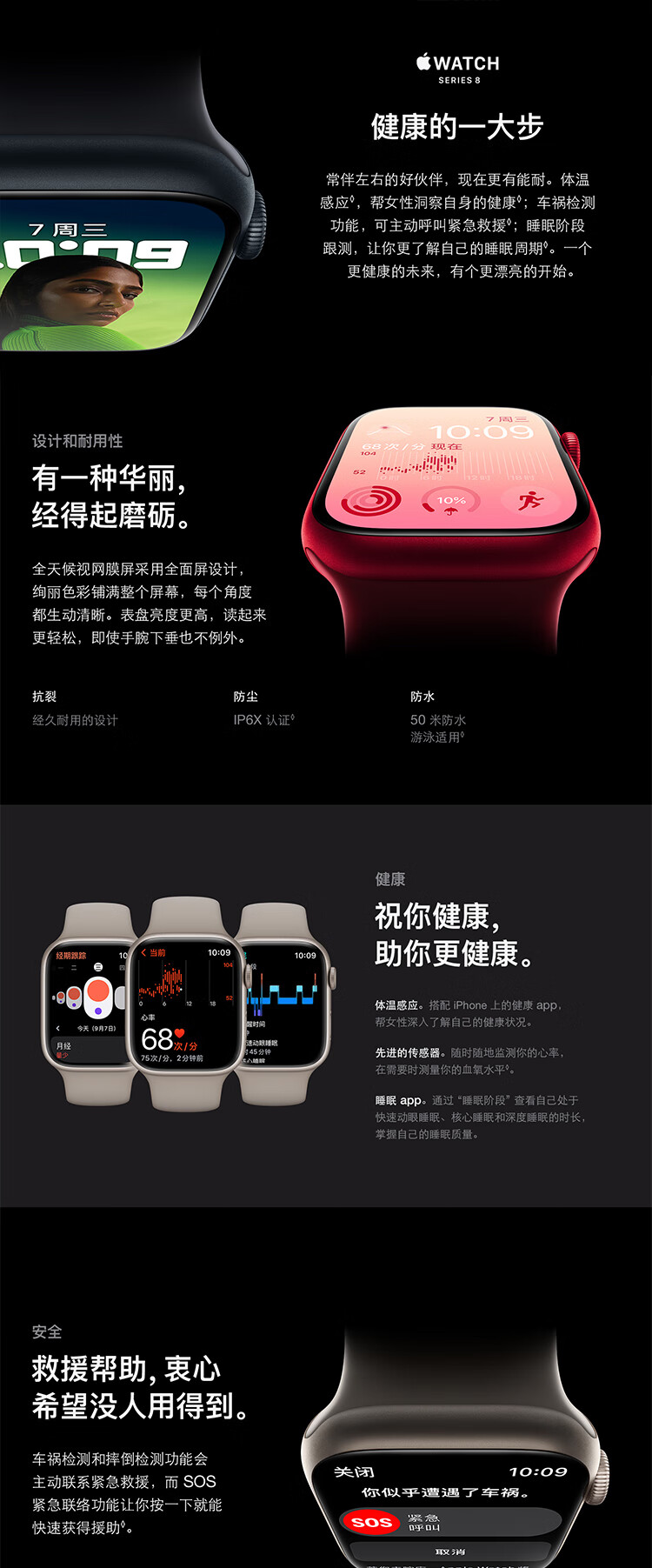 商品名称:Apple Watch Series 8 智能手表 黑色 | 白色 | 星空色