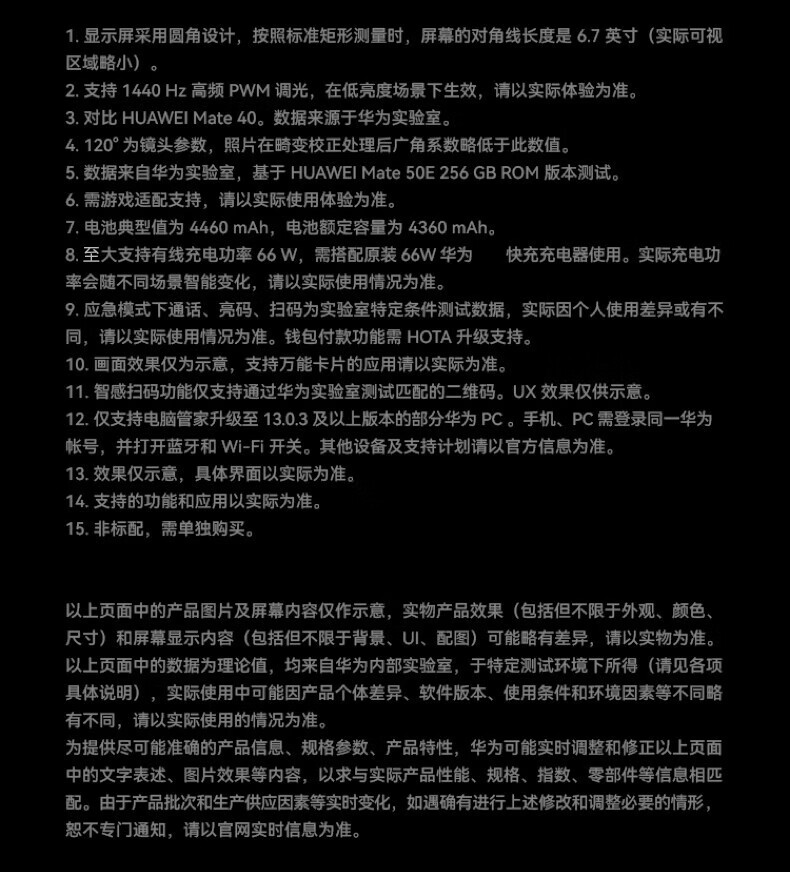 商品名称:华为 Mate 50 E 8GB+256GB 冰霜银
