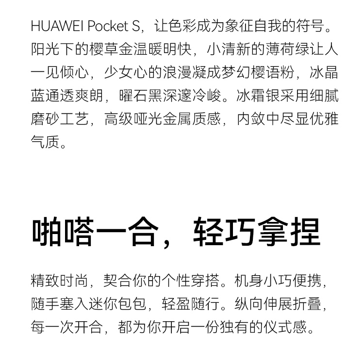 商品名称:HUAWEI Pocket S 256GB 薄荷绿 | 曜石黑 鸿蒙手机
