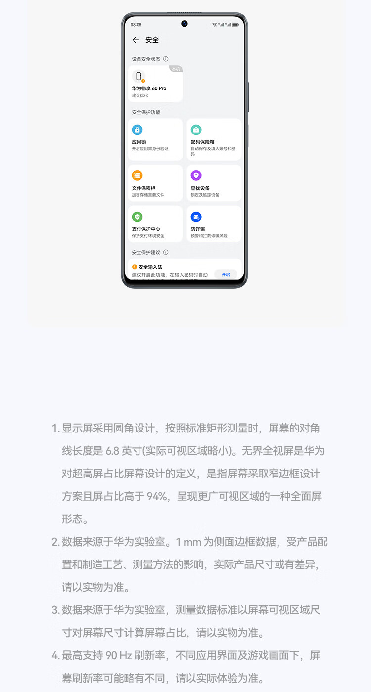 商品名称:【新品上市】华为畅享 60 Pro 128GB | 256GB 薄荷青 鸿蒙手机