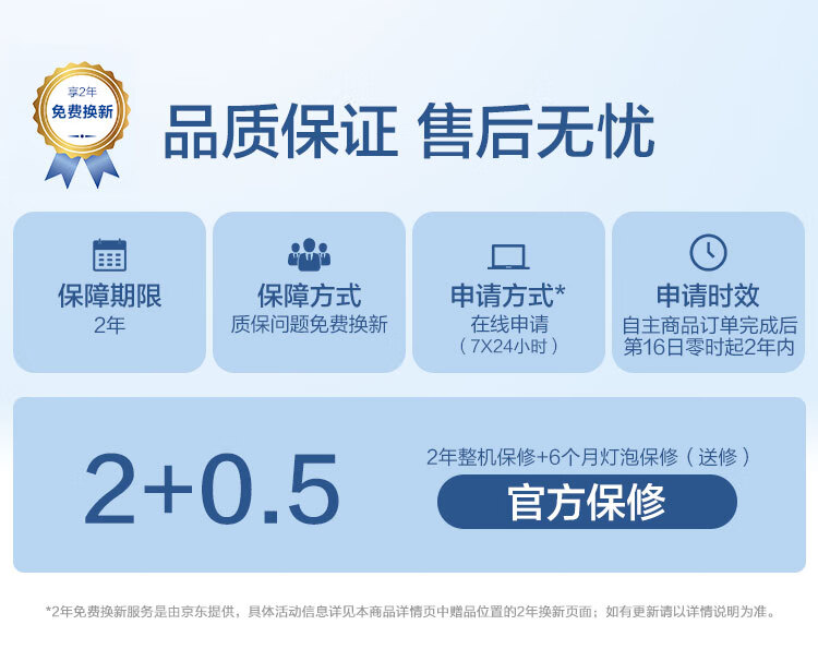 本商品质保周期为2年质保,在此时间范围内可提交维修申请,具体请以厂家服务为准。售后服务电话:400-810-9977