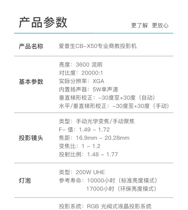 商品名称:爱普生(EPSON)CB-X50高清投影仪