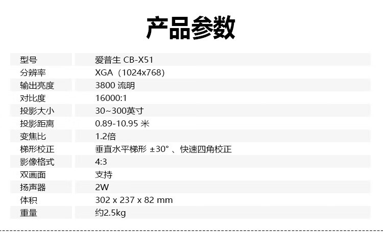 商品名称:爱普生(EPSON)CB-X51 投影仪 投影机