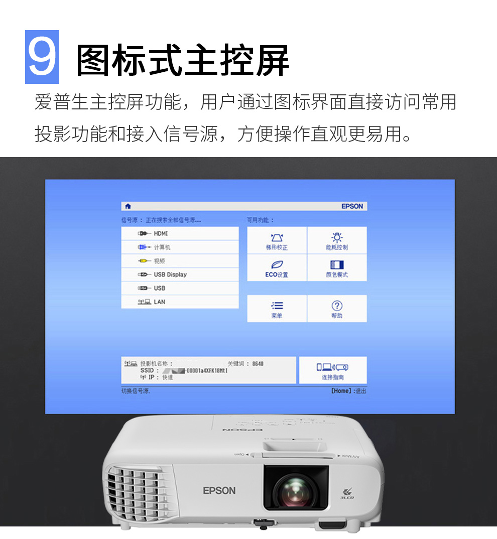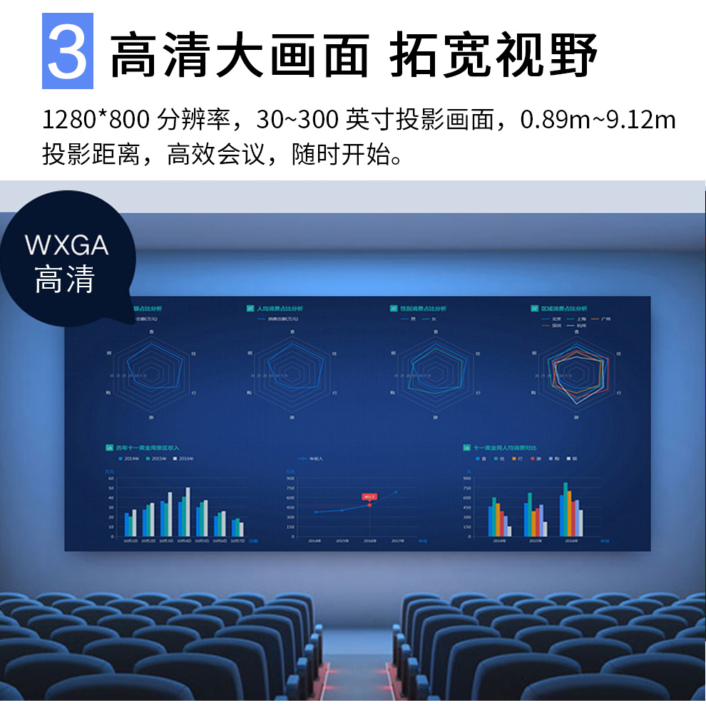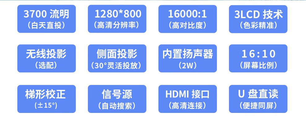 高清WXGA | 3700流明 | 短距投影 | 支持侧投