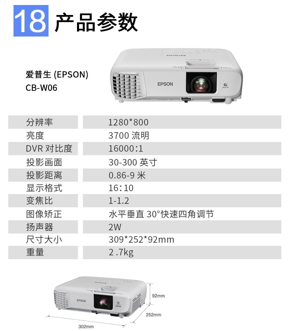 商品名称:爱普生(EPSON) CB-W06 投影仪