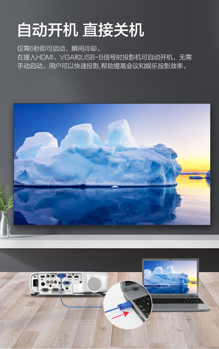 4100流明 | 标清 | 双HDMI接口 | 支持侧面投影 | 16000:1对比度