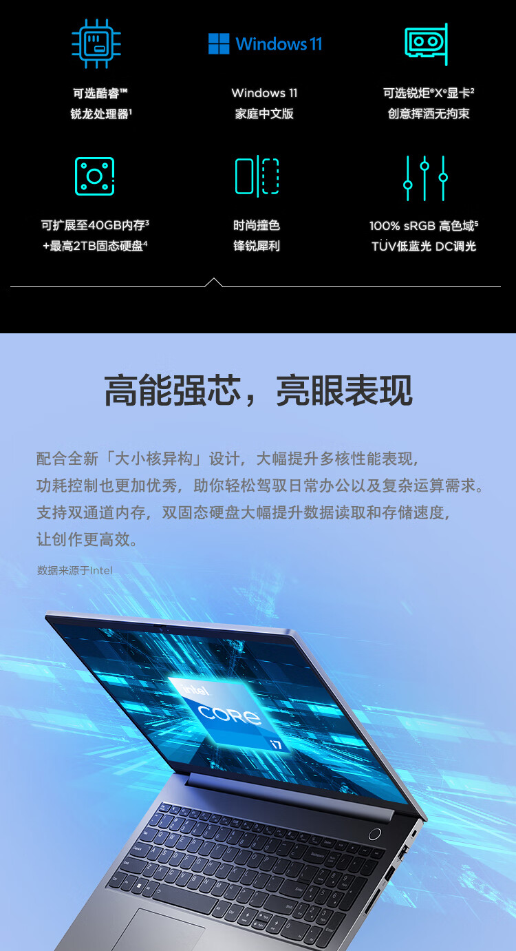 i5-1240P处理器 | 16GDDR4 | 1T固态硬盘 | 15.6英寸高清屏