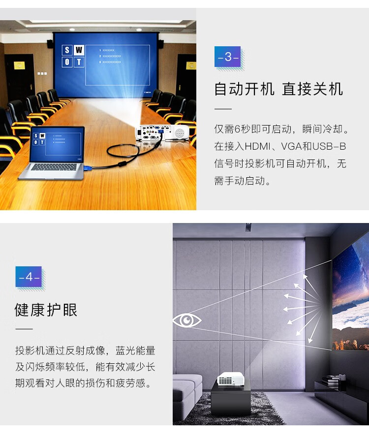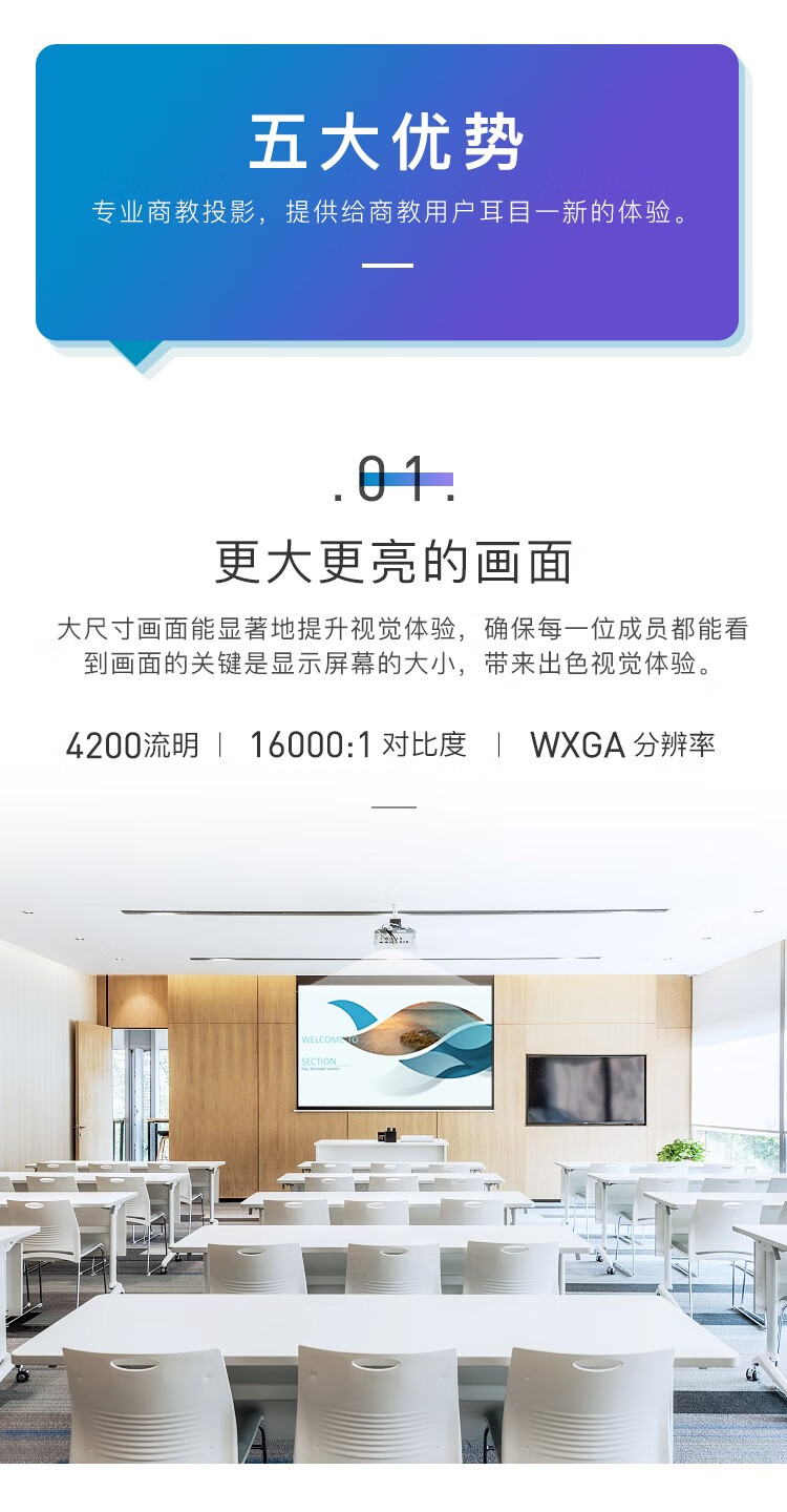 4200流明 | 标清 | 双HDMI接口 | 支持侧面投影 | 16000:1对比度