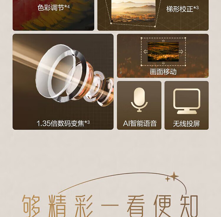 1080P | 3000流明 | 搭载极光TV系统 | AI语音遥控 | 1.35倍变焦