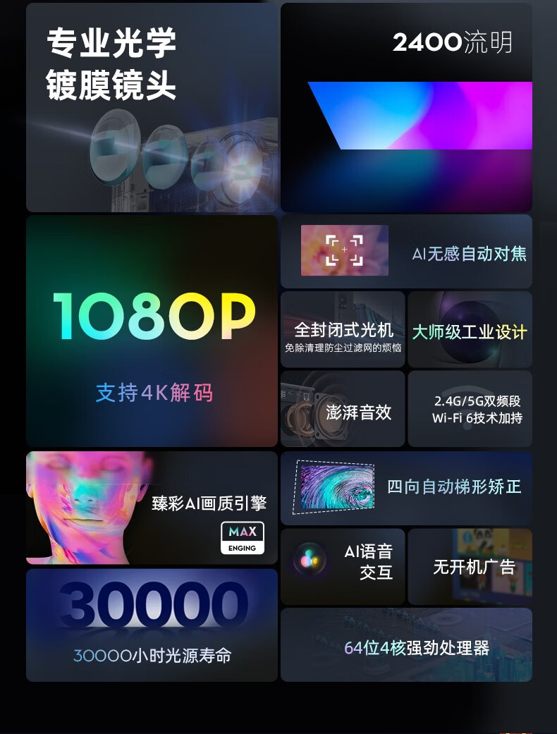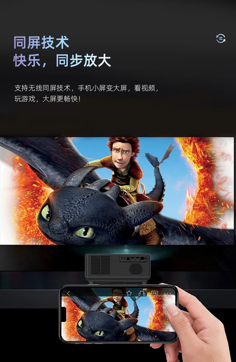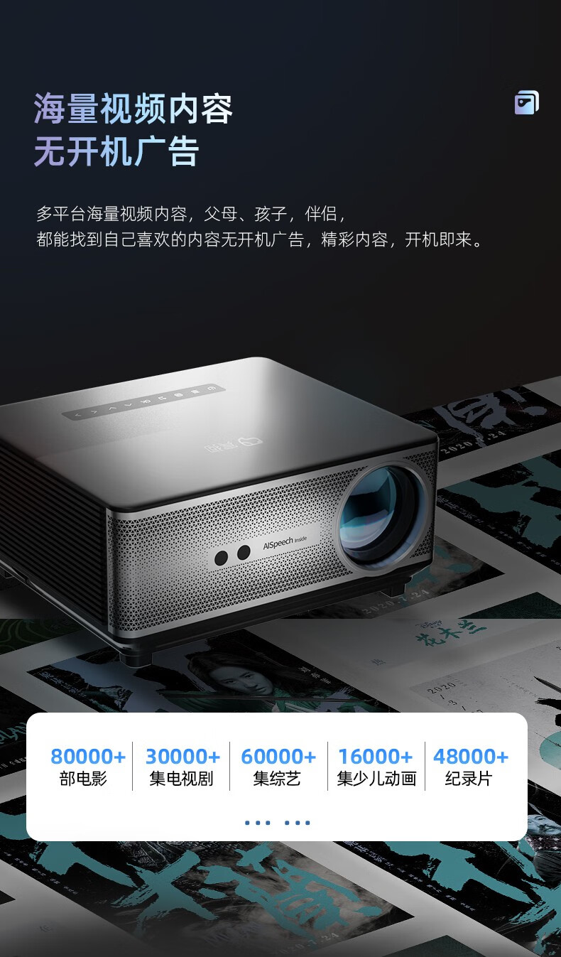 操作系统:安卓9.0 | 1200流明 | 无线WIFI | 自动对焦 | 1080P | 投影最大150英寸