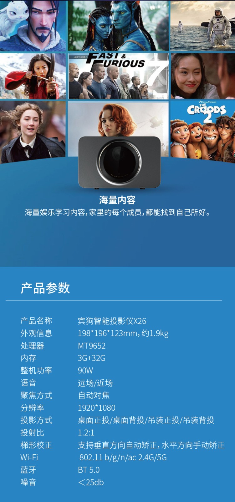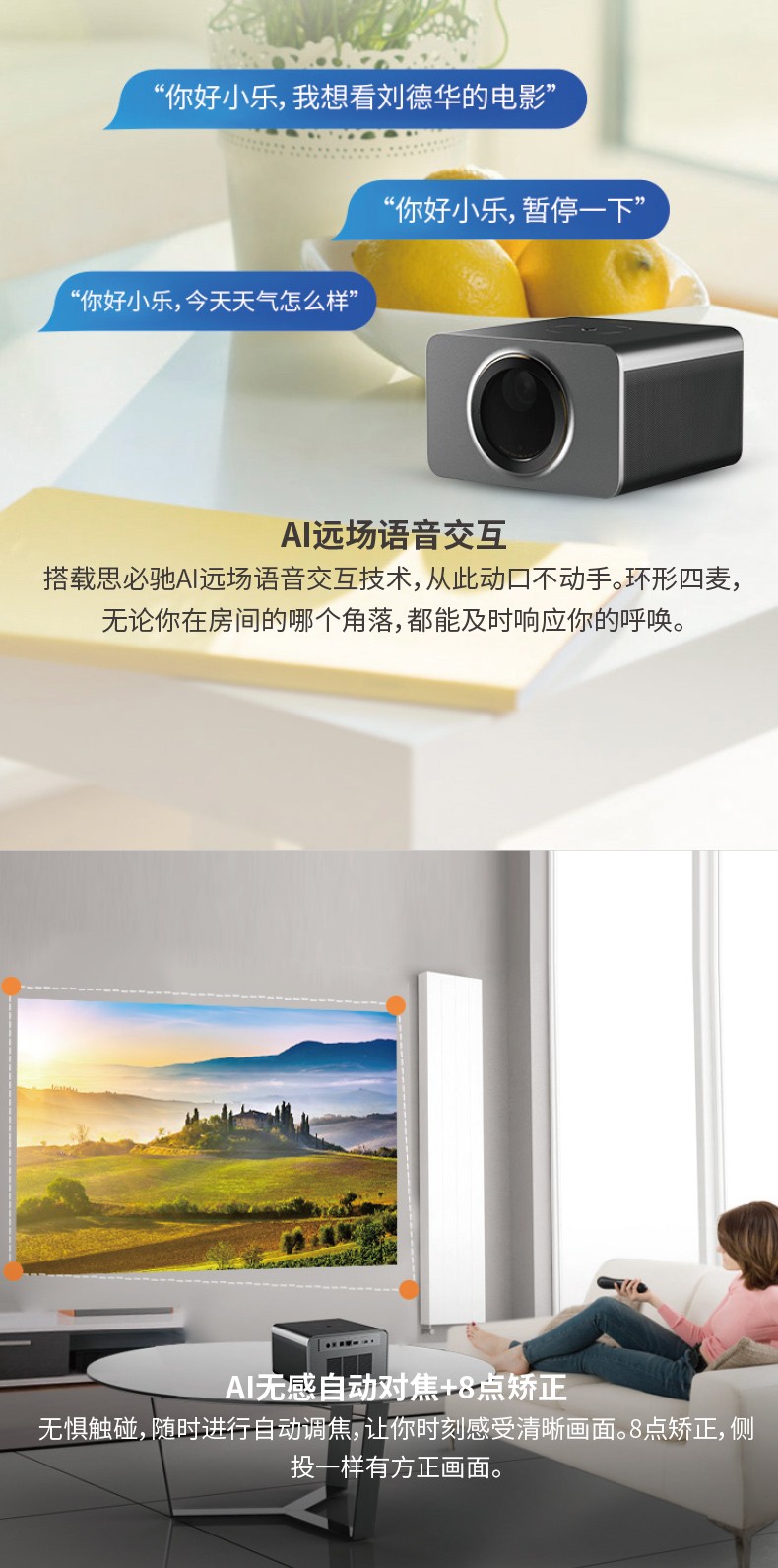 系统:安卓9.0 | 客厅巨幕 | 1080P | 高亮版 | 电子变焦 | 梯形矫正
