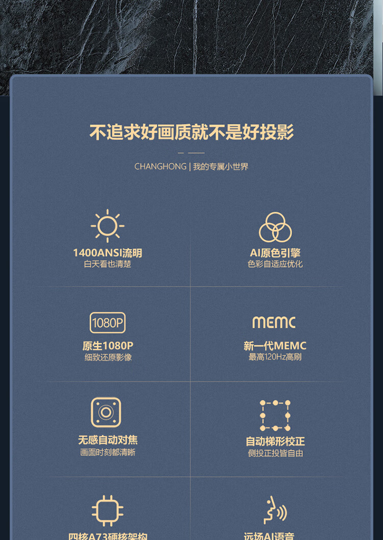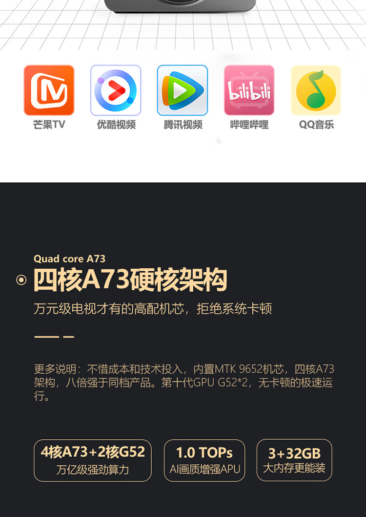 CPU A73*4 | 系统 Android 9.0 | 投影尺寸300英寸 | 1400流明 | 6500:1