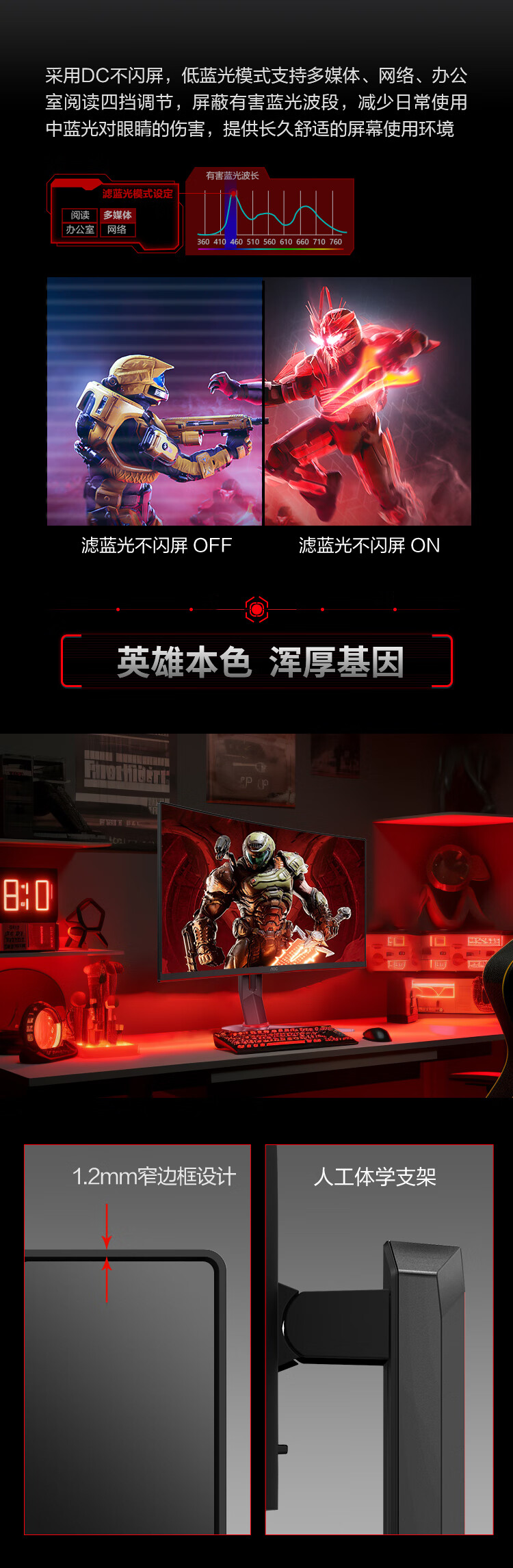 真8Bit面板,4000:1高静态对比度,低蓝光不闪屏,环屏视代快人一步