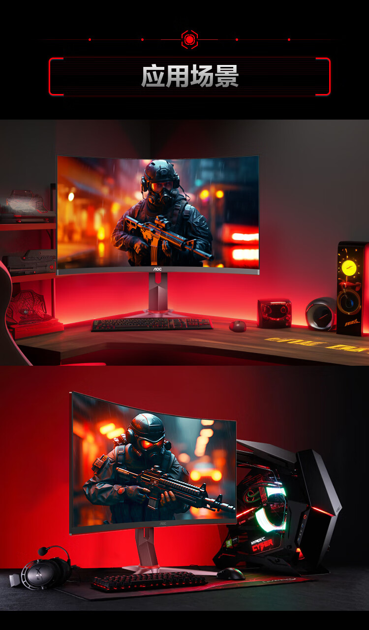 AOC 27英寸 2K高清 180Hz HDR10 快速液晶1ms 广色域 旋转升降 曲面电竞电脑显示器