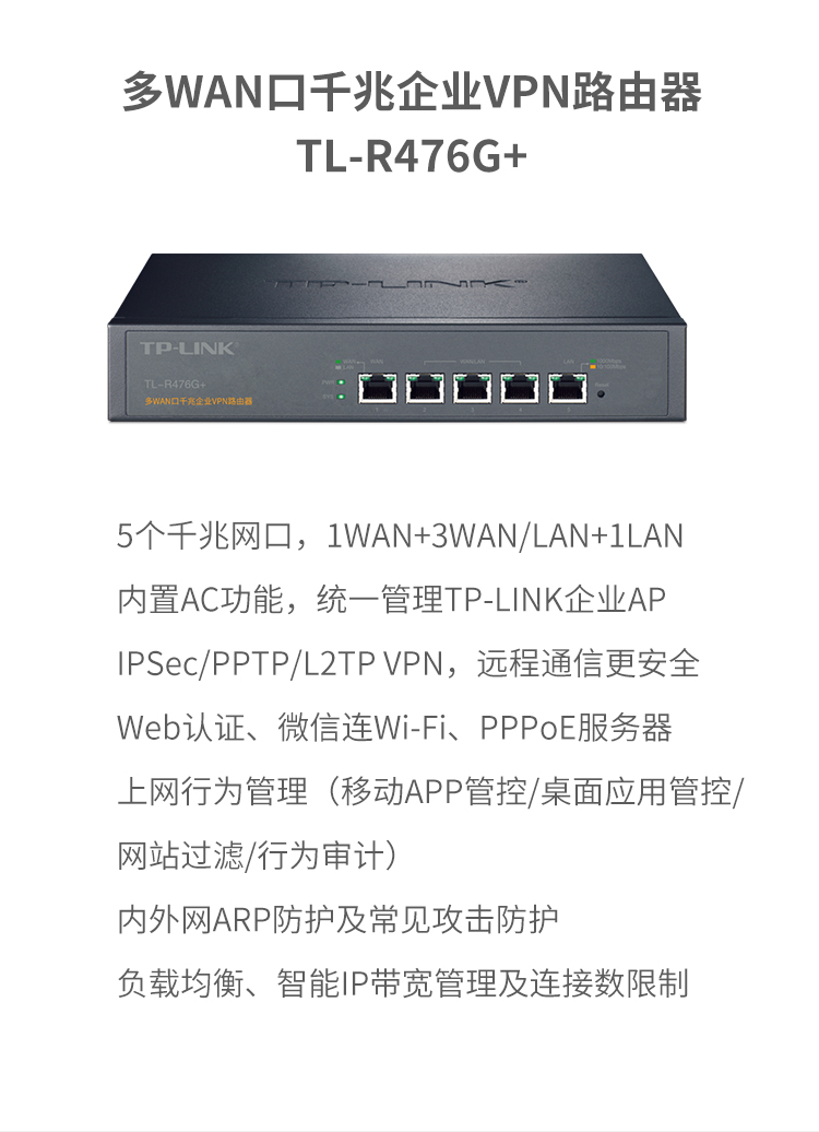 商品名称:普联(TP-LINK) TL-R476G+多WAN口企业级千兆有线路由器