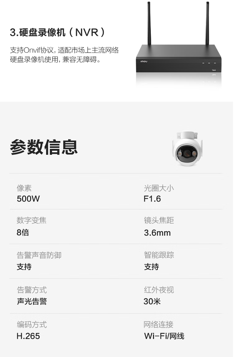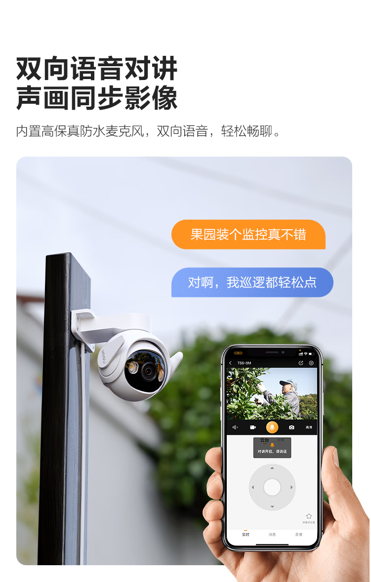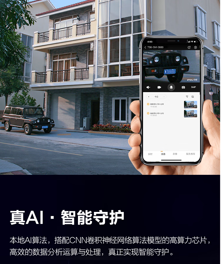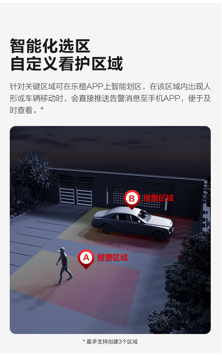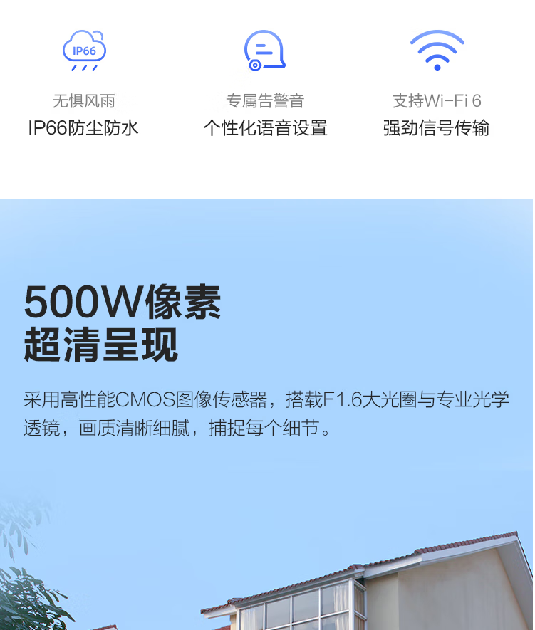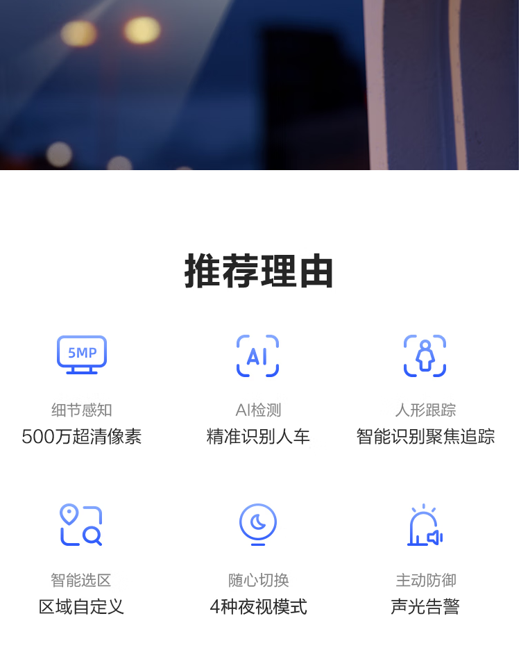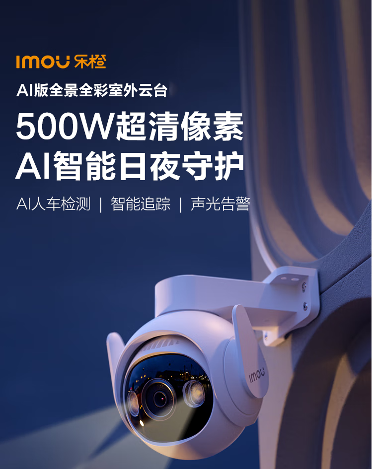 有效像素:5MP | AI智能人形检测 | 车辆检测 | 自定义检测区域 | 智能追踪 | Wi-Fi6 | 双向语音