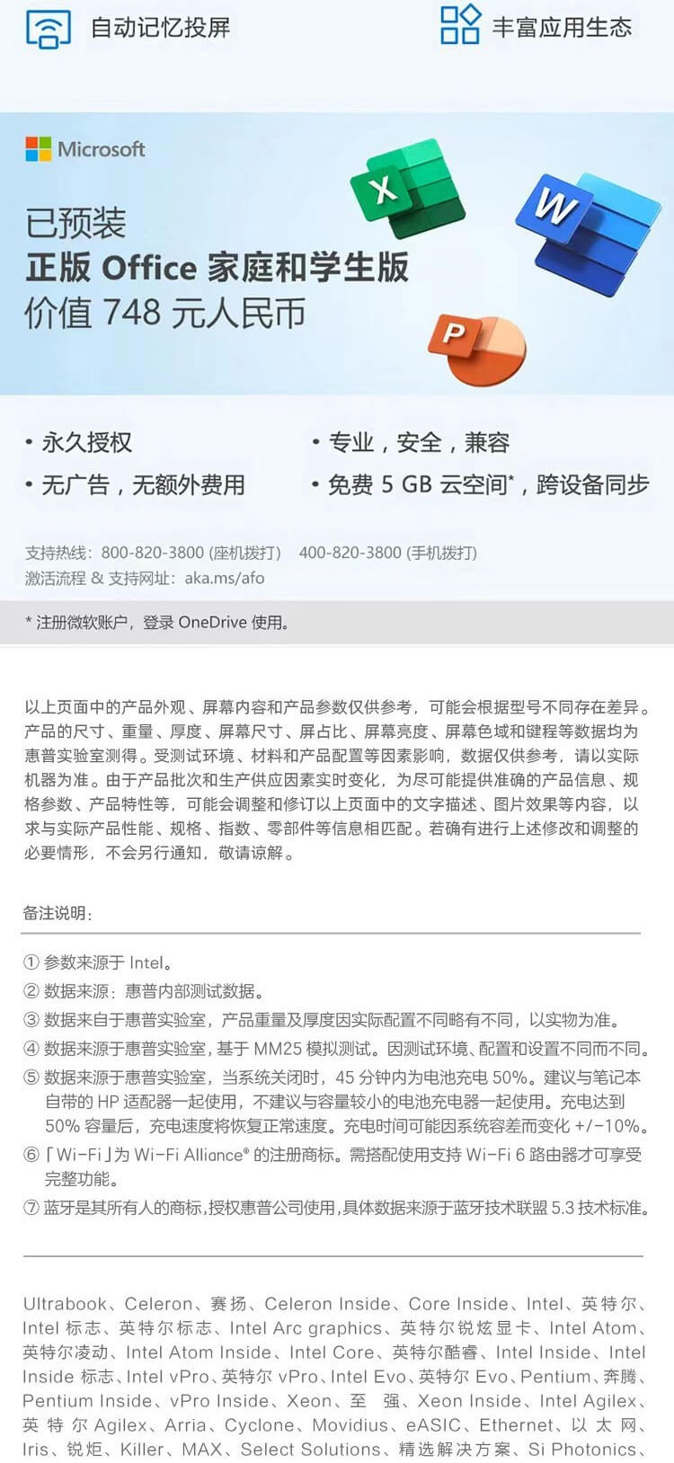 惠普 (HP) 星Book 14 14英寸笔记本电脑 14-ep0777TU - 银色