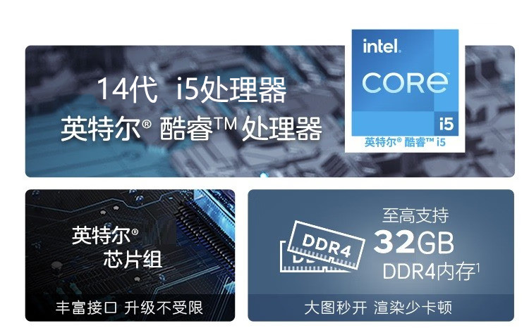 Intel i5-14400处理器 16GDDR4 1TB SSD硬盘 23英寸 显示器
