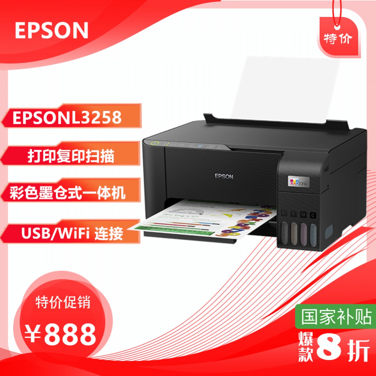 爱普生(EPSON)L3258 无线WIFI 彩色打印机 多功能一体机(咸阳)