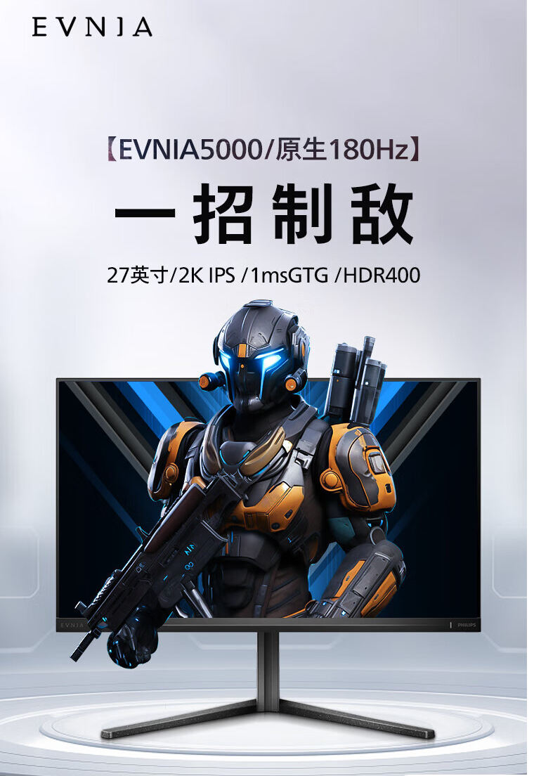 飞利浦 27英寸电竞显示器 2K 原生180Hz Fast-IPS屏 HDR400 1ms 满血10bit 升降旋转 游戏电脑显示屏幕 27M2N5510J